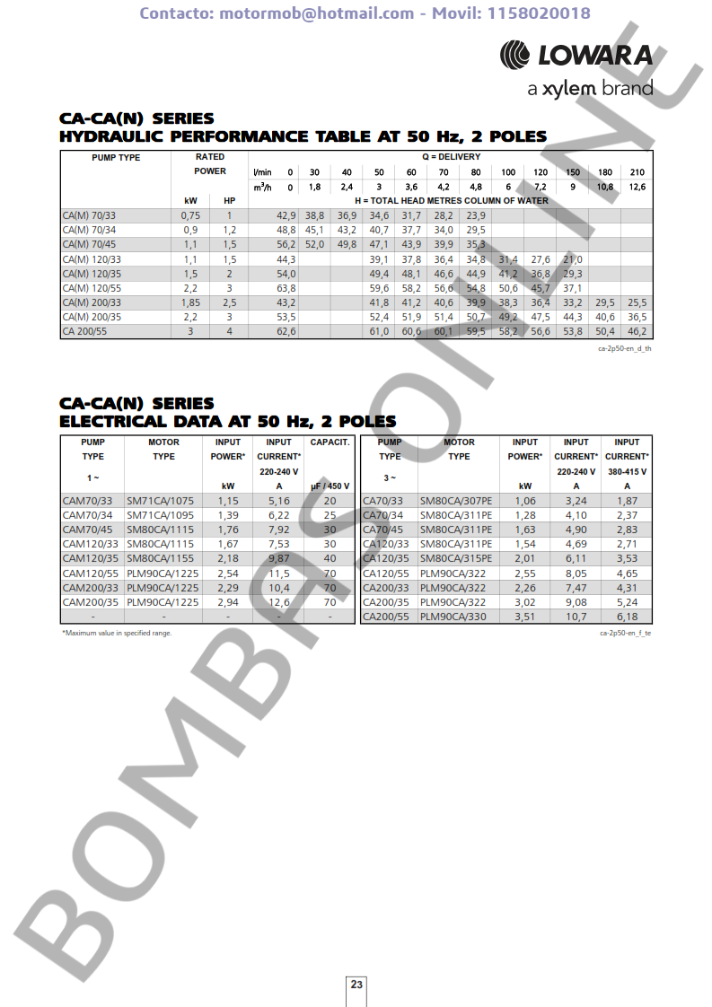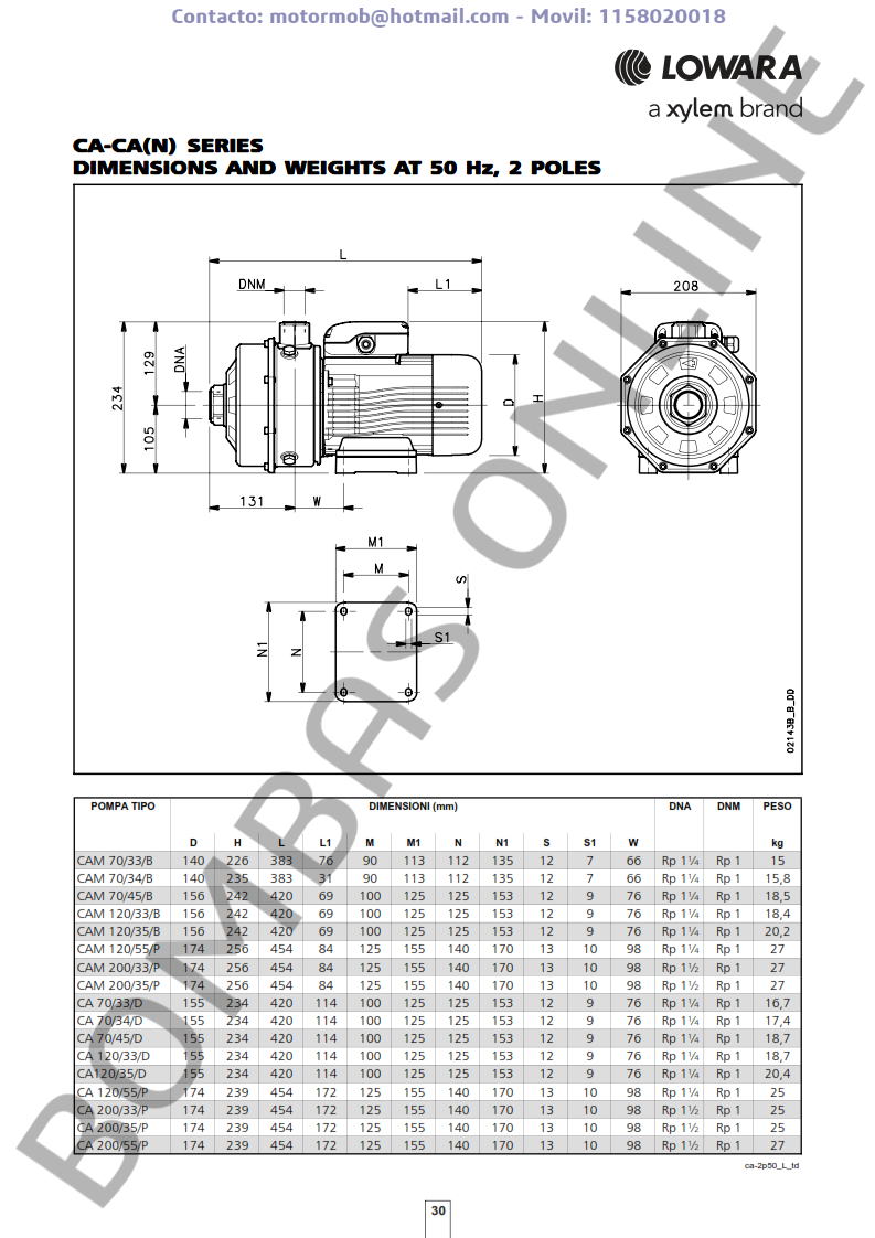 ITEM: LOWARA CAM 120/55N/P – 104490114 – MONOFASICA