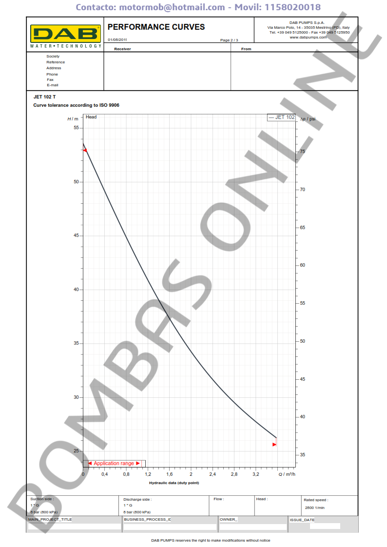 - Líquido bombeado: limpio, libre de sustancias sólidas y abrasivas, no corrosivo, no viscoso, no cristalizado y químicamente neutro, con características similares al agua