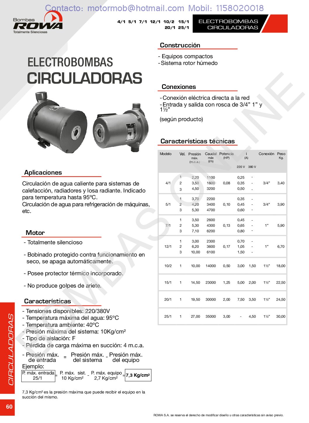 Bomba Centrífuga Circuladora Calefacción ROWA 7/1 3v – Monofásica