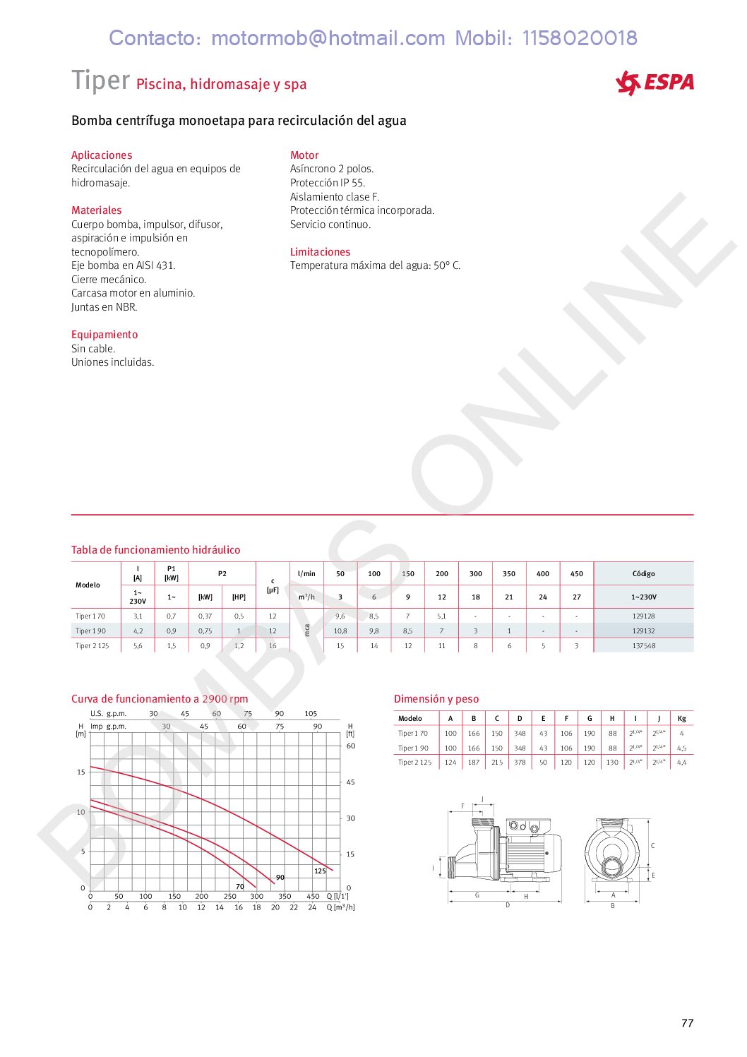 ITEM: ESPA TIPER 2 75 0.75 HP – Monofásica