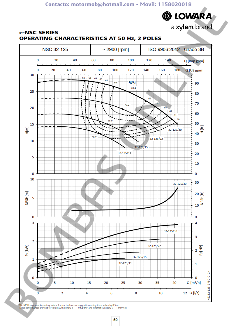 ITEM: LOWARA NSCS 32-125/15/S25 RCS4 – ALTO RENDIMIENTO – 101841010