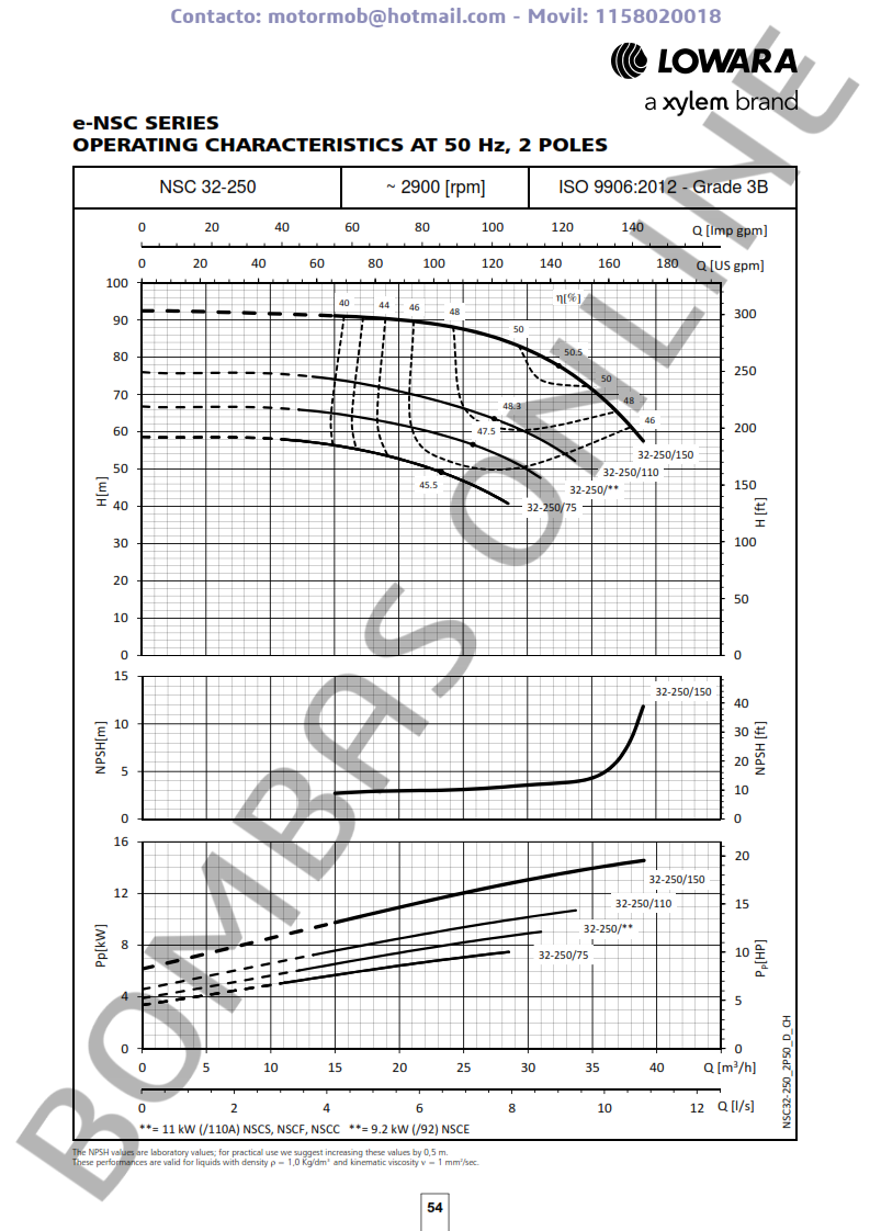 ITEM: LOWARA NSCS 32-250/150/P25 VCS4 – ALTO RENDIMIENTO – 101841370