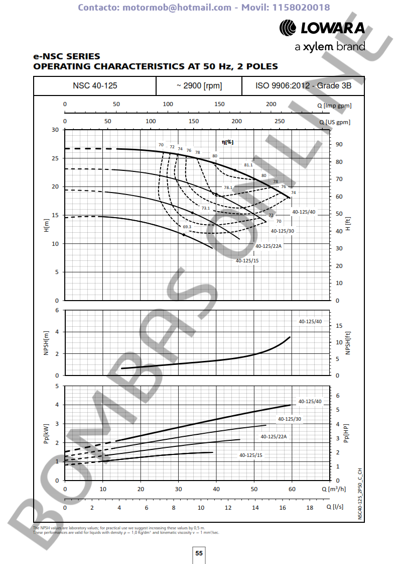 ITEM: LOWARA NSCS 40-125/15/S25 RCS4 – ALTO RENDIMIENTO – 101841200