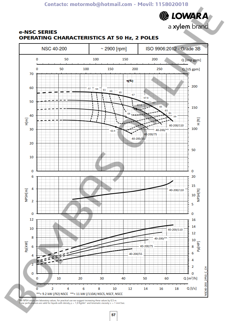 ITEM: LOWARA NSCS 40-200/75/P25 VCS4 – ALTO RENDIMIENTO – 101841310