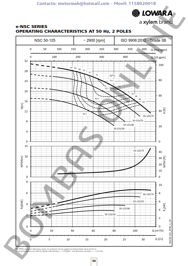 ITEM: LOWARA NSCS 50-125/75/P25 VCS4 – ALTO RENDIMIENTO – 101841430