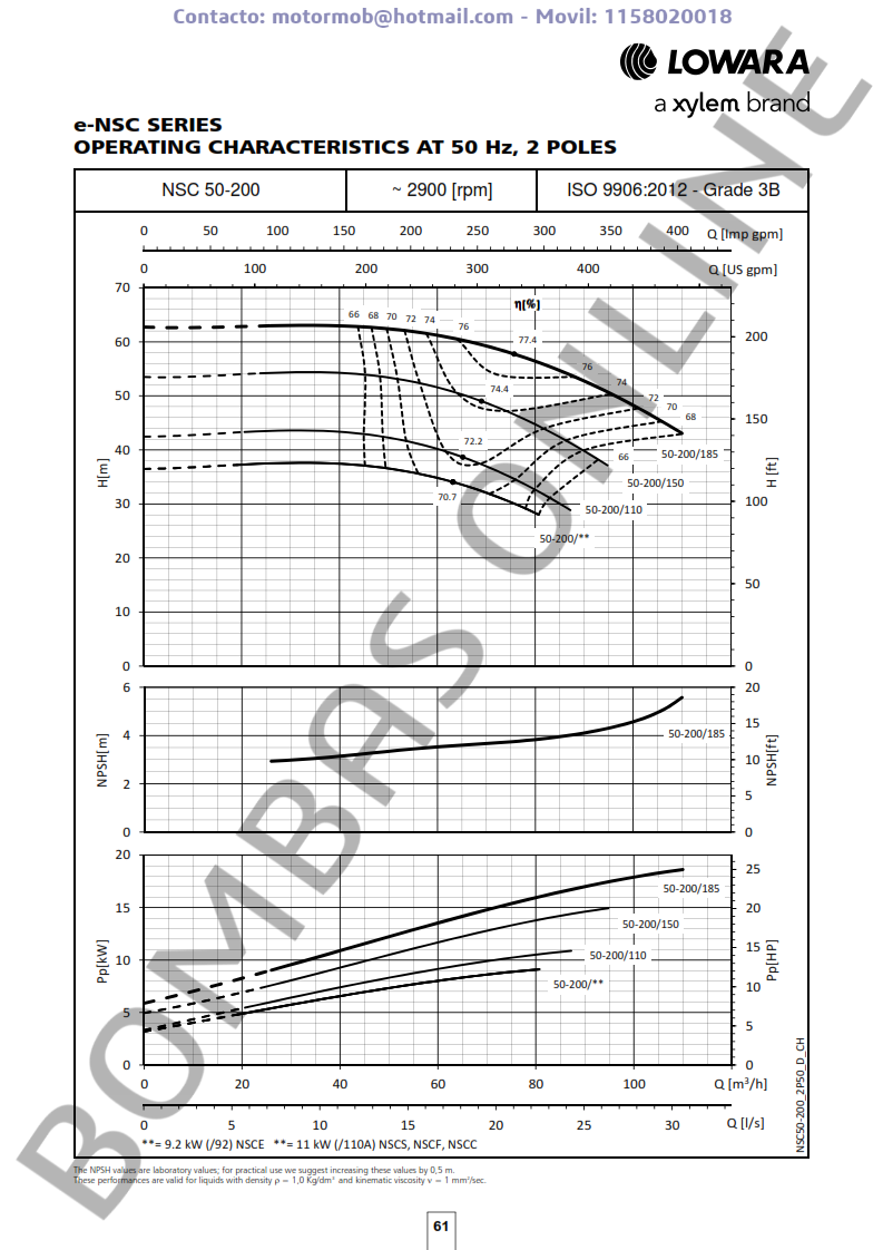 ITEM: LOWARA NSCS 50-200/185/P25 VCS4 – ALTO RENDIMIENTO – 101841530