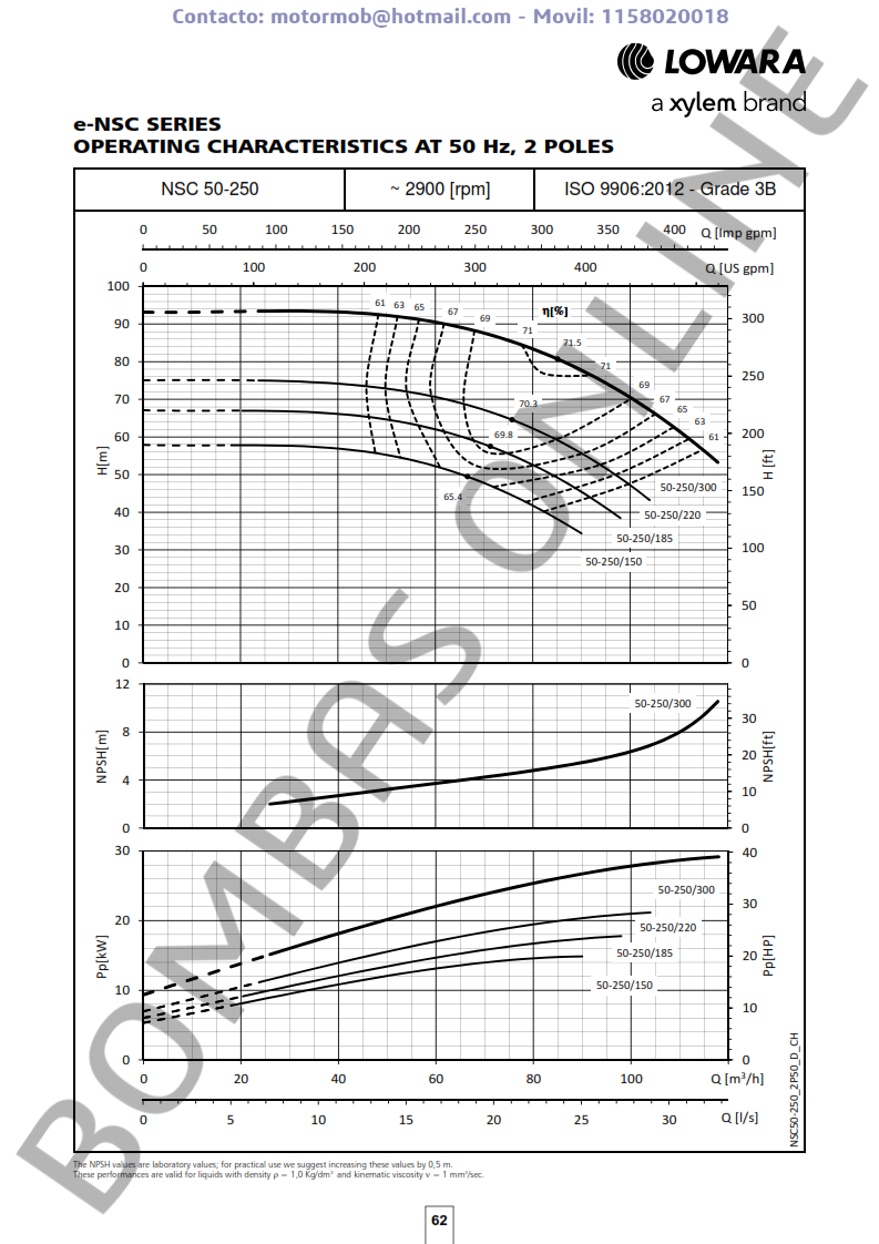 ITEM: LOWARA NSCS 50-250/150/P25 VCS4 – ALTO RENDIMIENTO – 101841550
