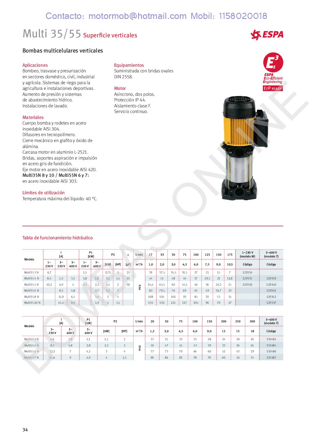 ITEM: ESPA MULTI 35 5M 2 HP – Trifásica