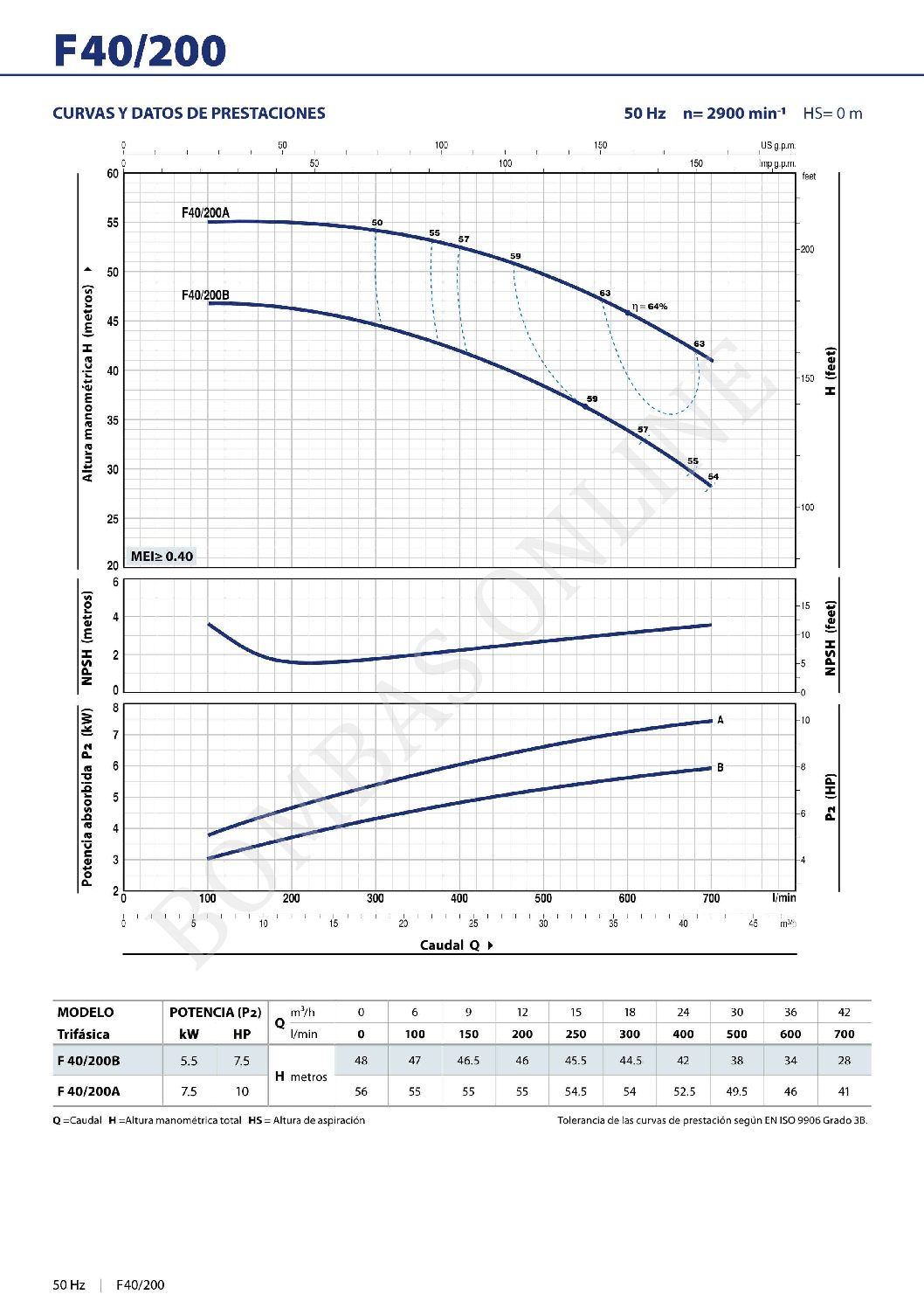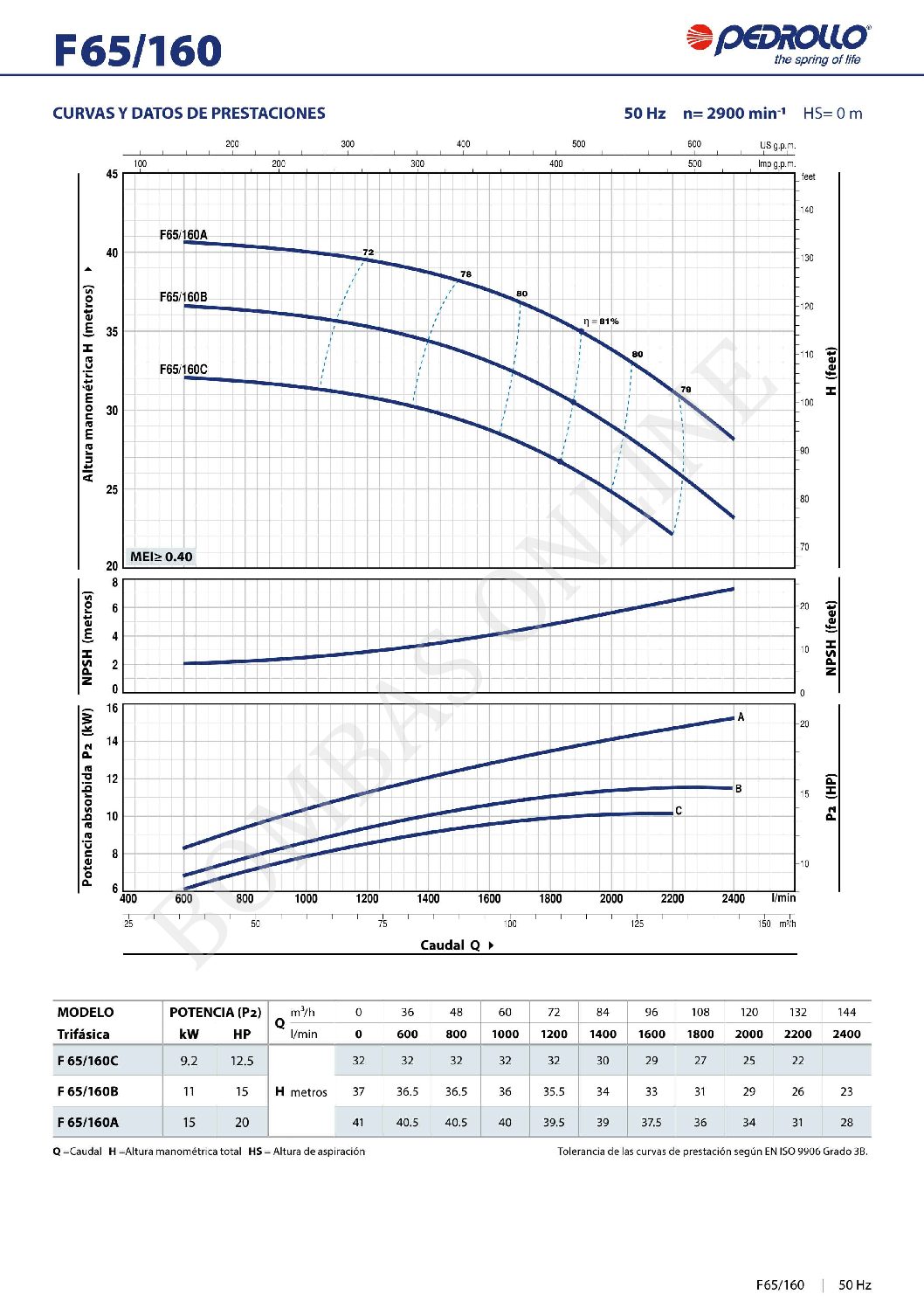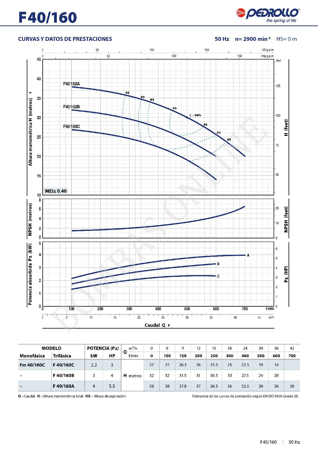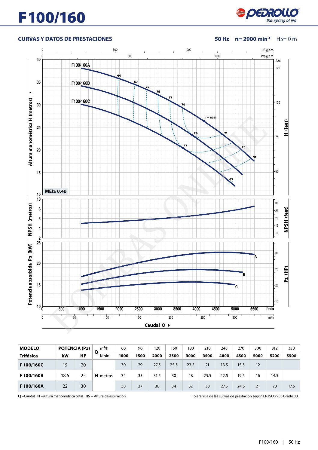 BOMBA CENTRIFUGA NORMALIZADA PEDROLLO F 40/160 A – 5.5 HP TRIFASICA