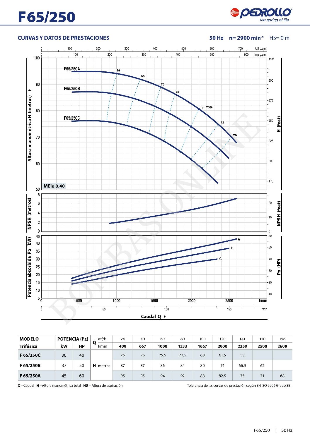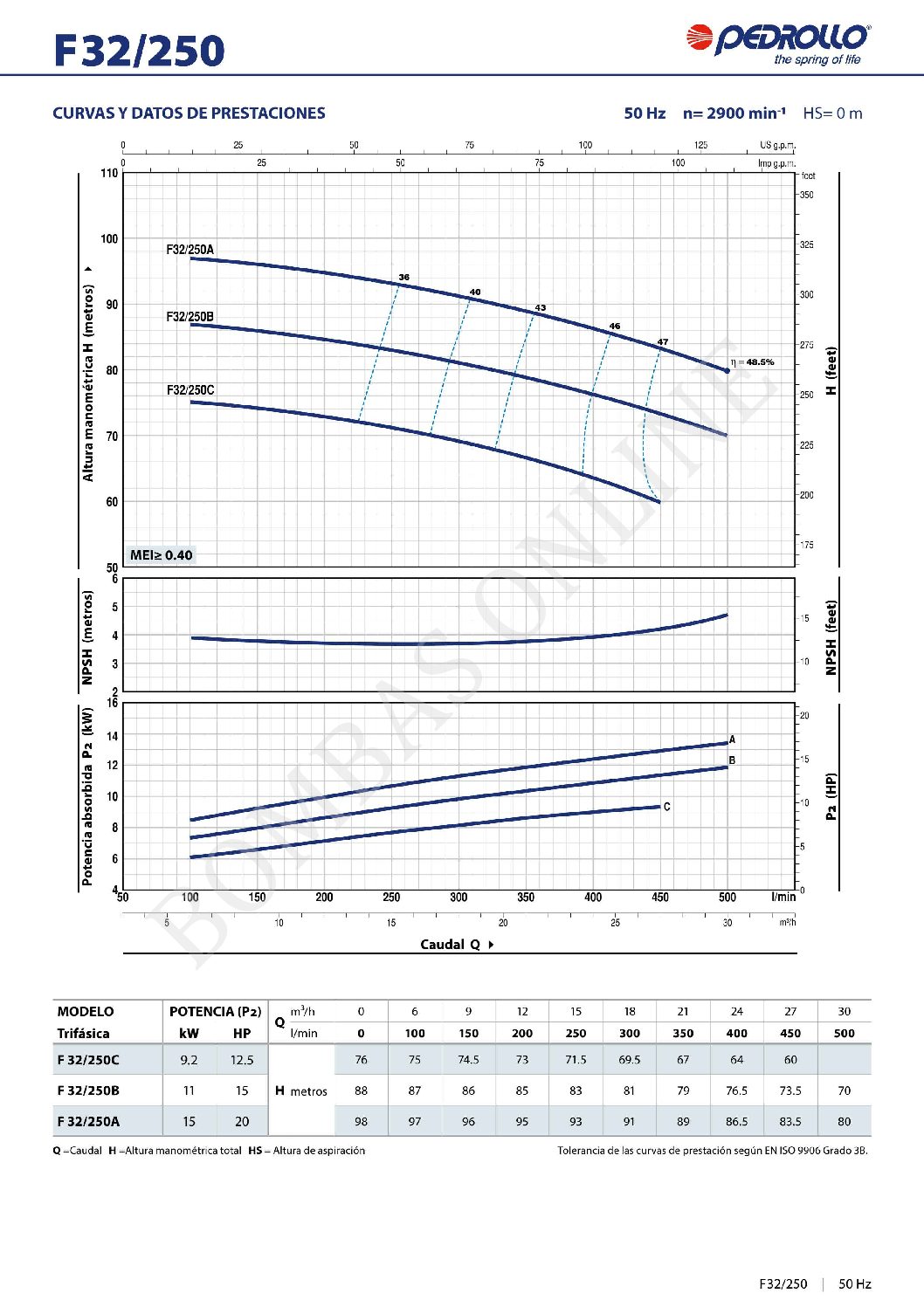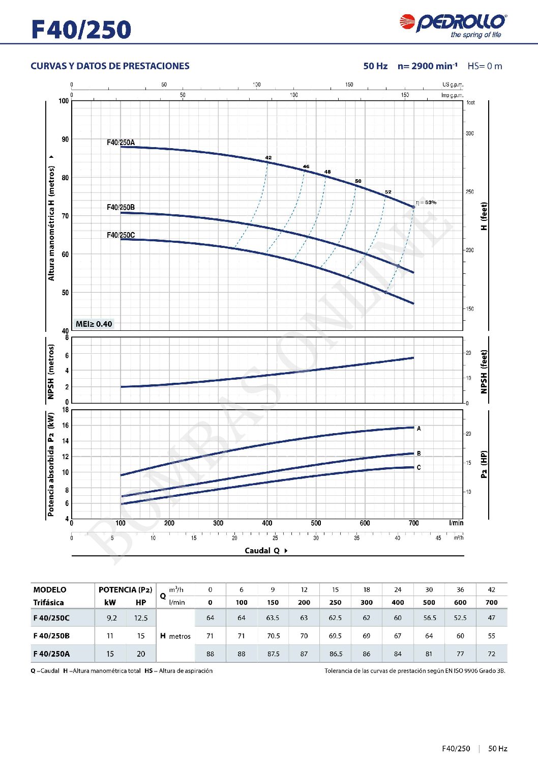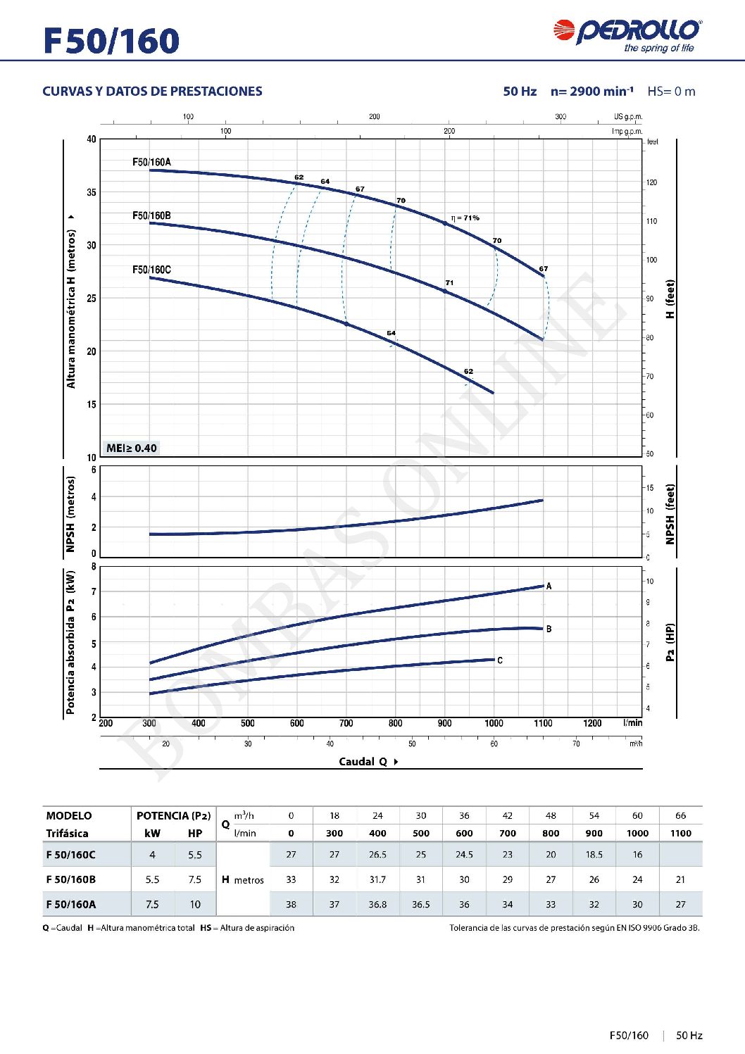 BOMBA CENTRIFUGA NORMALIZADA PEDROLLO F 40/160 A – 5.5 HP TRIFASICA