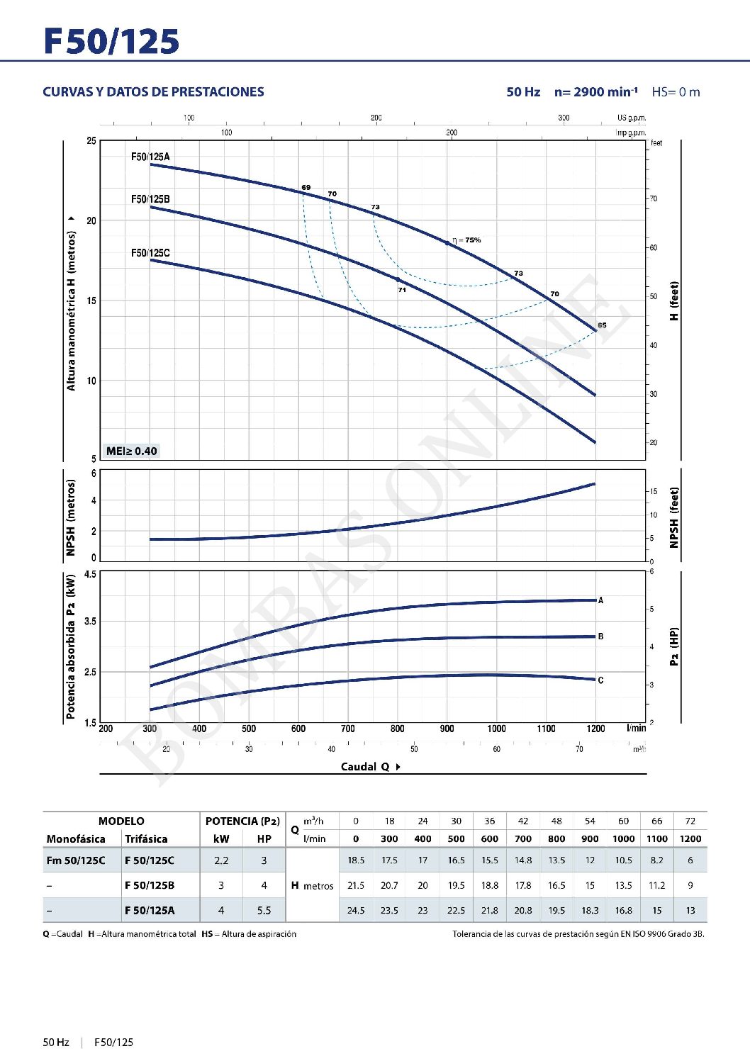 Presión máxima en el cuerpo bomba 10 bar (PN 10)