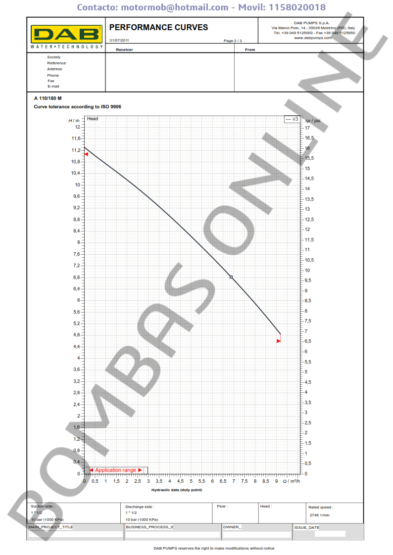 - Líquido bombeado: limpio, libre de sustancias sólidas y aceites minerales, no viscosos y químicamente neutros, con características similares al agua (máximo 30% de glicol)