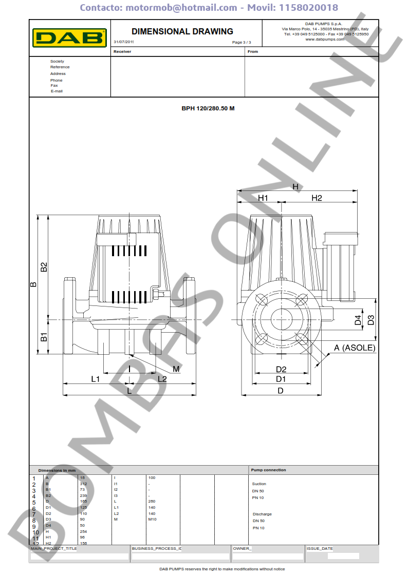 BOMBA DAB BPH 120/280.50 M – Circuladora – Monofasica – Articulo 505927002
