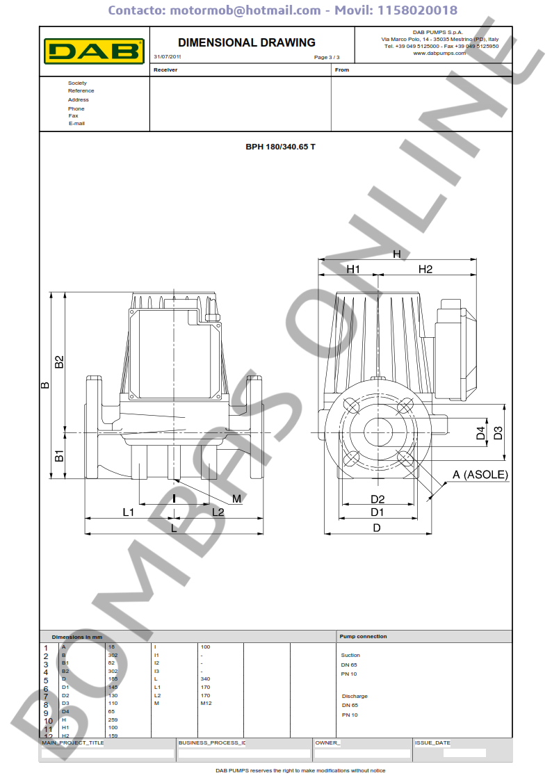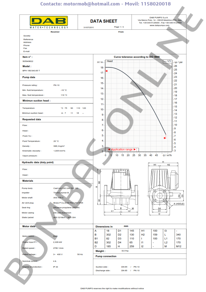 BOMBA DAB BPH 180/340.65 T – Circuladora – Trifasica – Articulo 505949622