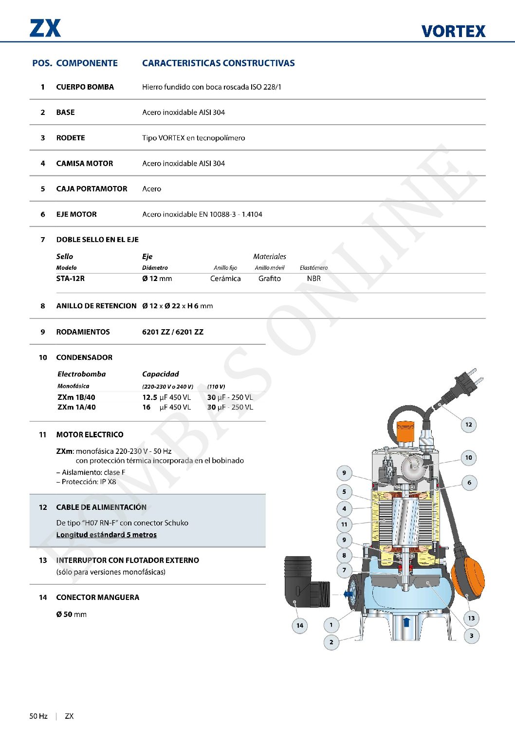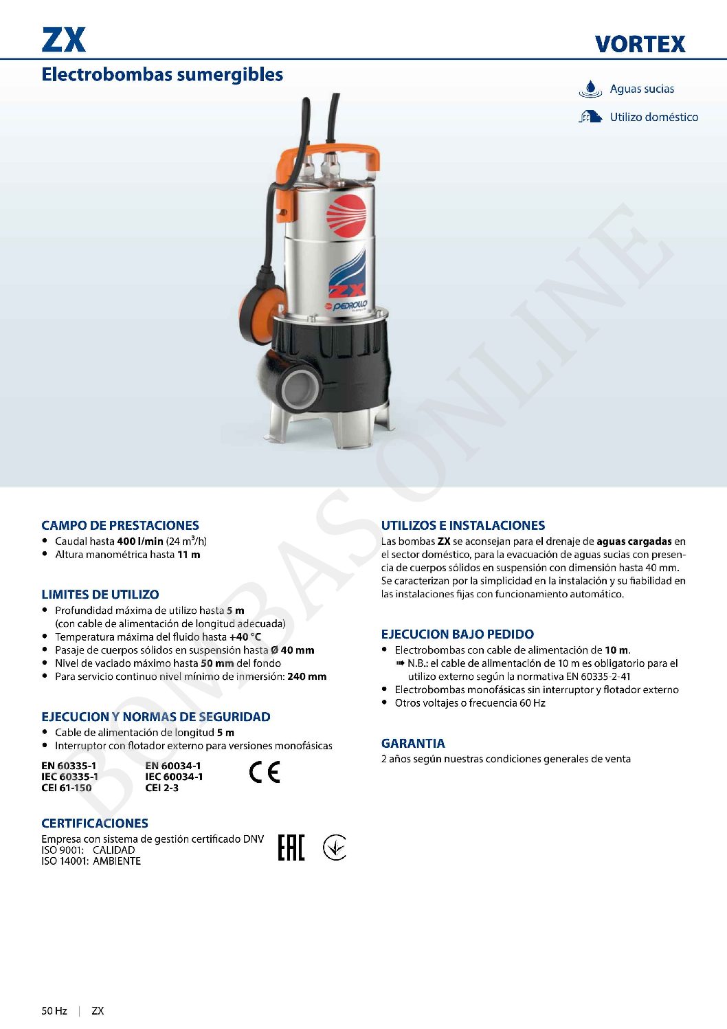 Las bombas ZX se aconsejan para el drenaje de aguas cargadas en el sector doméstico, para la evacuación de aguas sucias con presencia de cuerpos sólidos en suspensión con dimensión hasta 40 mm.