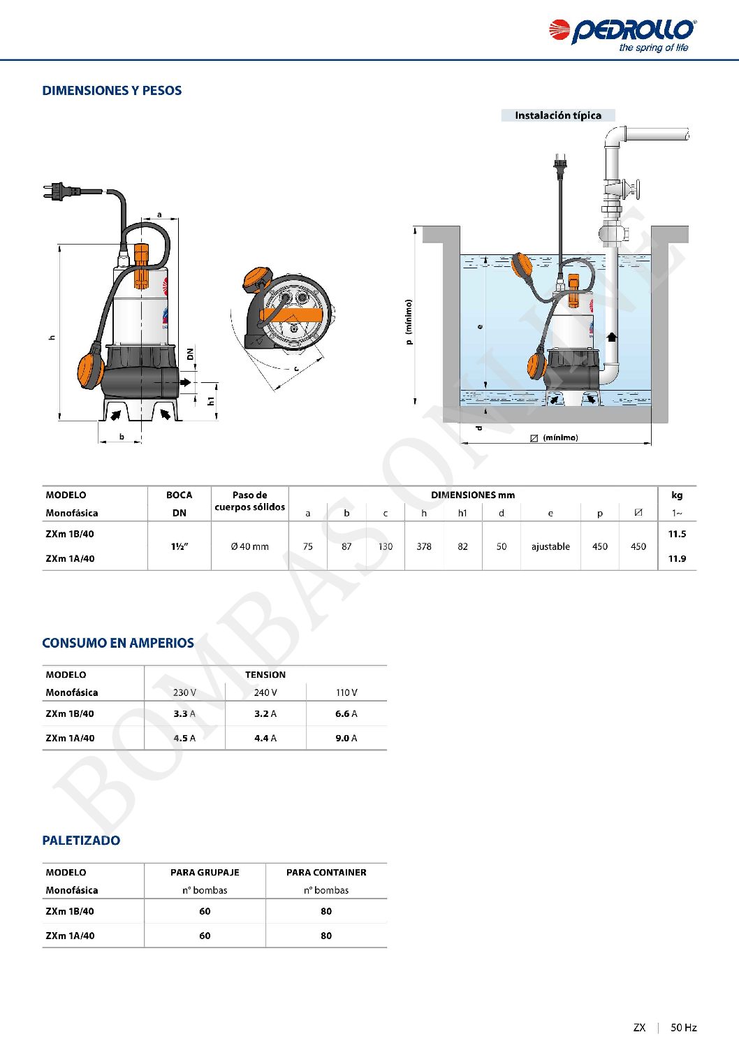 BOMBA DESAGOTE CLOACAL PEDROLLO ZXm 2/40 – 0,8 HP MONOFASICA