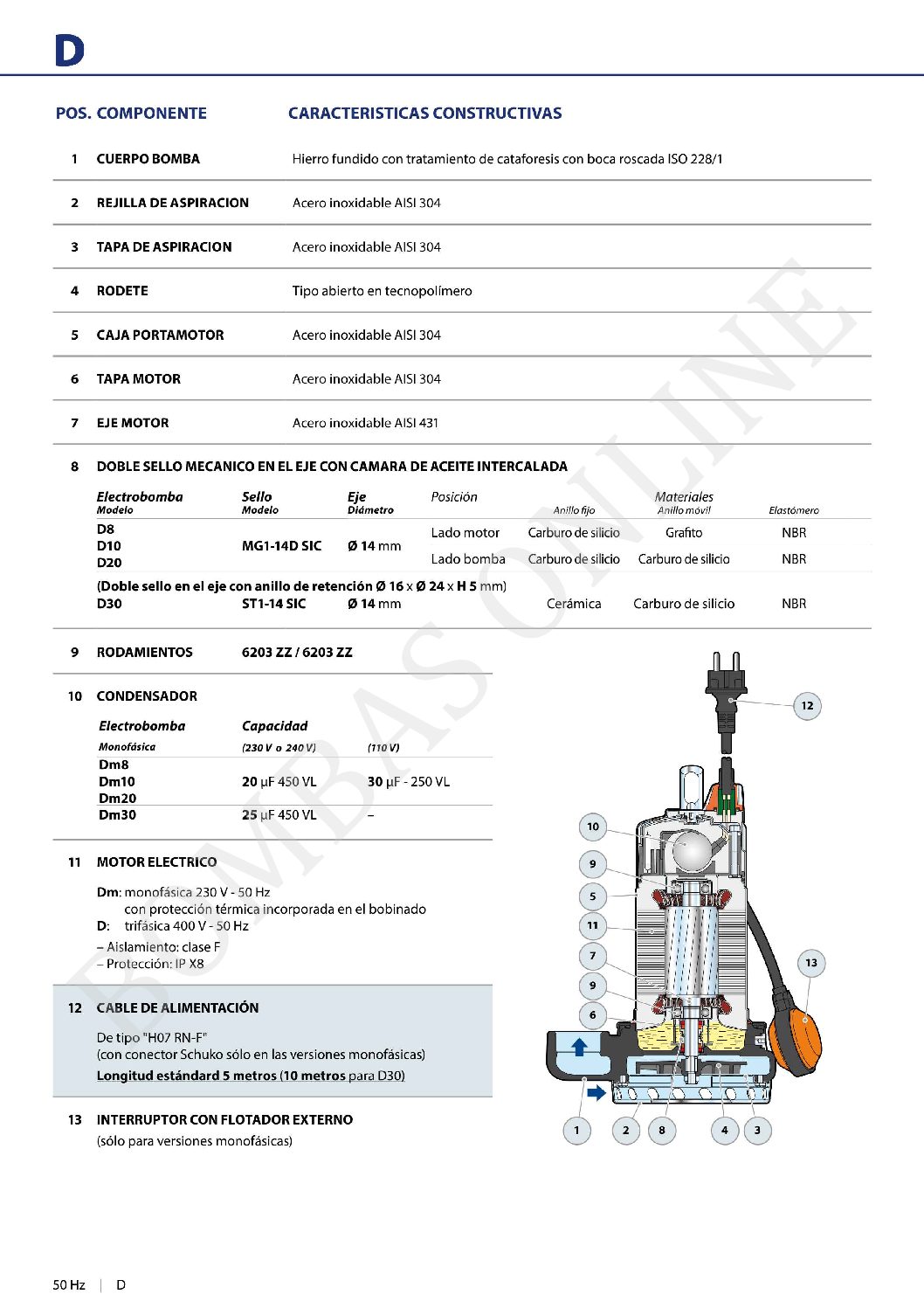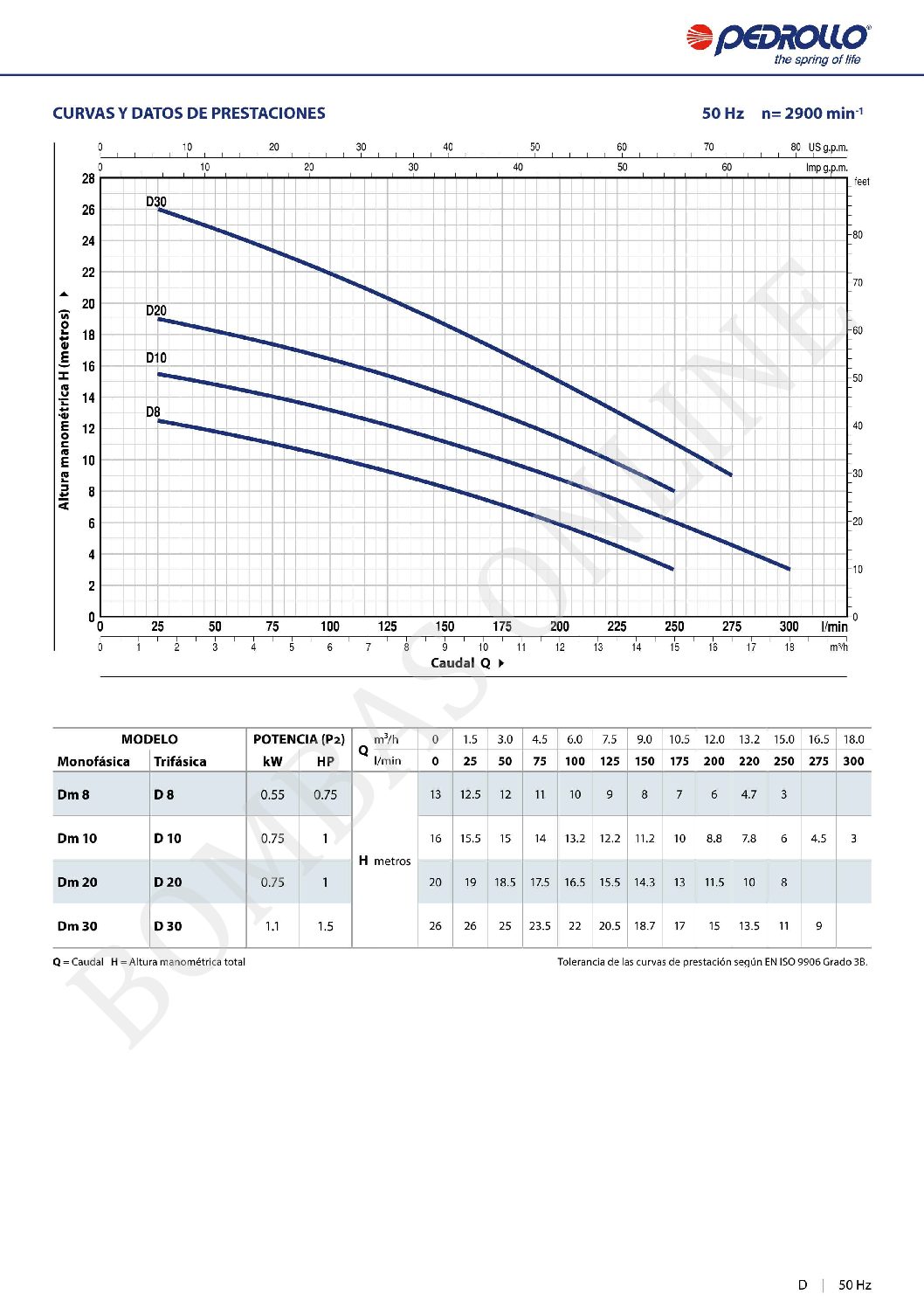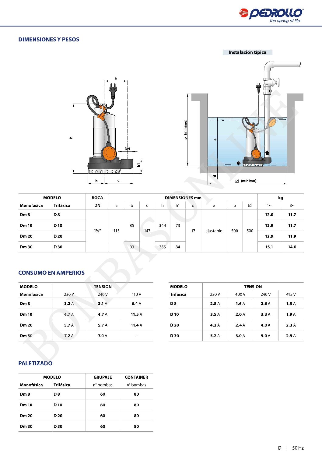 BOMBA DESAGOTE PLUVIAL PEDROLLO Dm/8-N – 0.8 HP MONOFASICA