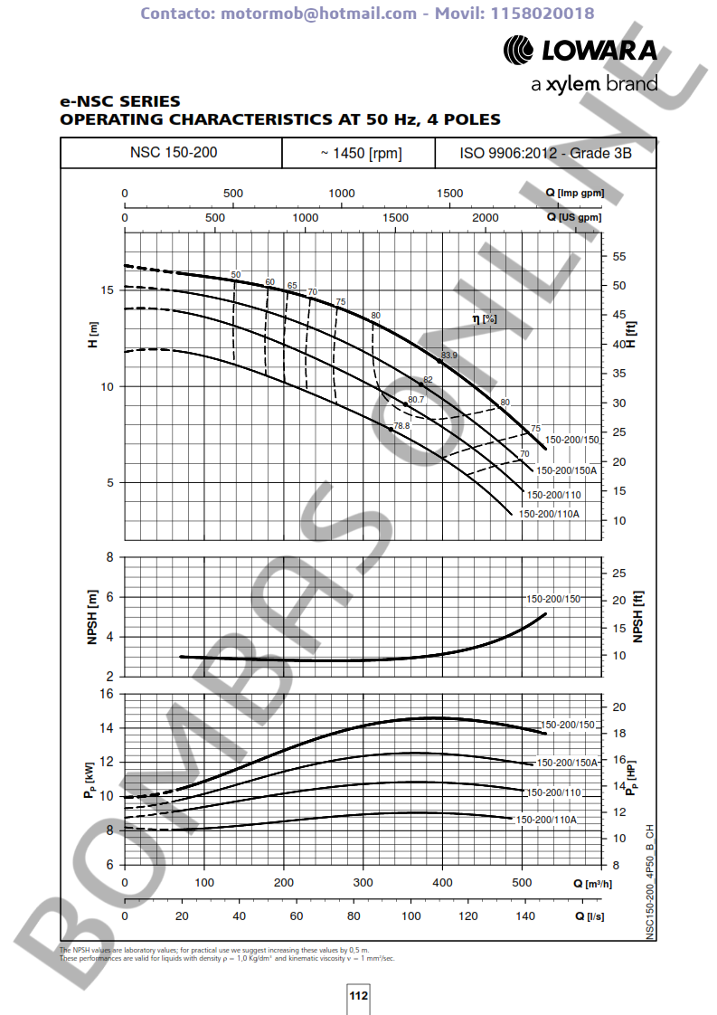 ITEM: LOWARA NSCF 150-200/150/P45 VDC4 – 703761511 – TRIFASICA