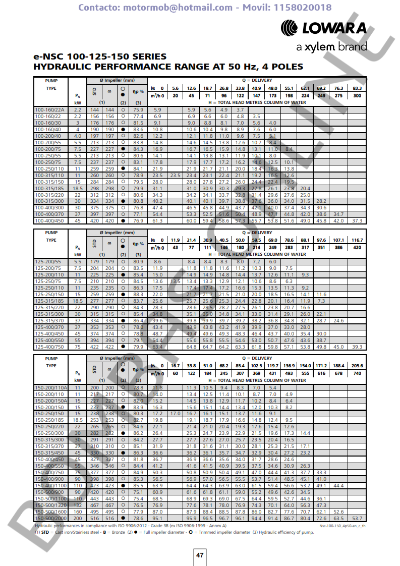 ITEM: LOWARA NSCF 150-400/1100/W45 VDC4 – 703761690 – TRIFASICA