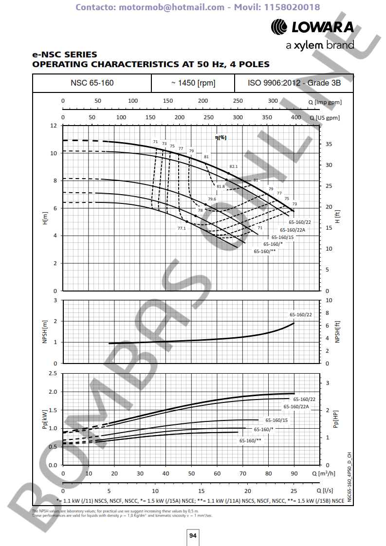 ITEM: LOWARA NSCF 65-160/22/P45 RCC4 – 101845700 – TRIFASICA