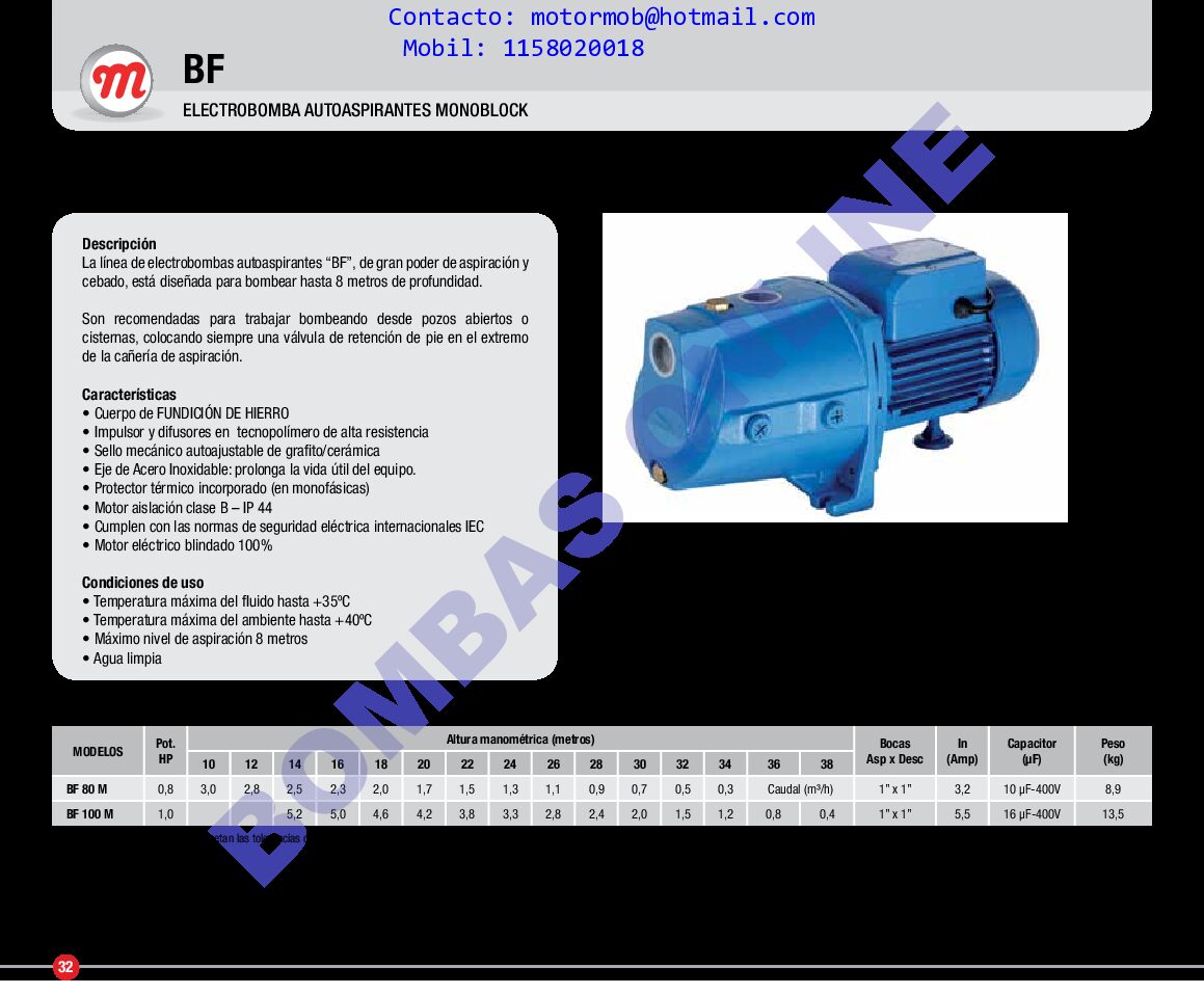 DESCARGUE LA FICHA TECNICA DEL PRODUCTO AQUI: BF FICHA TECNICA BOMBAS ONLINE