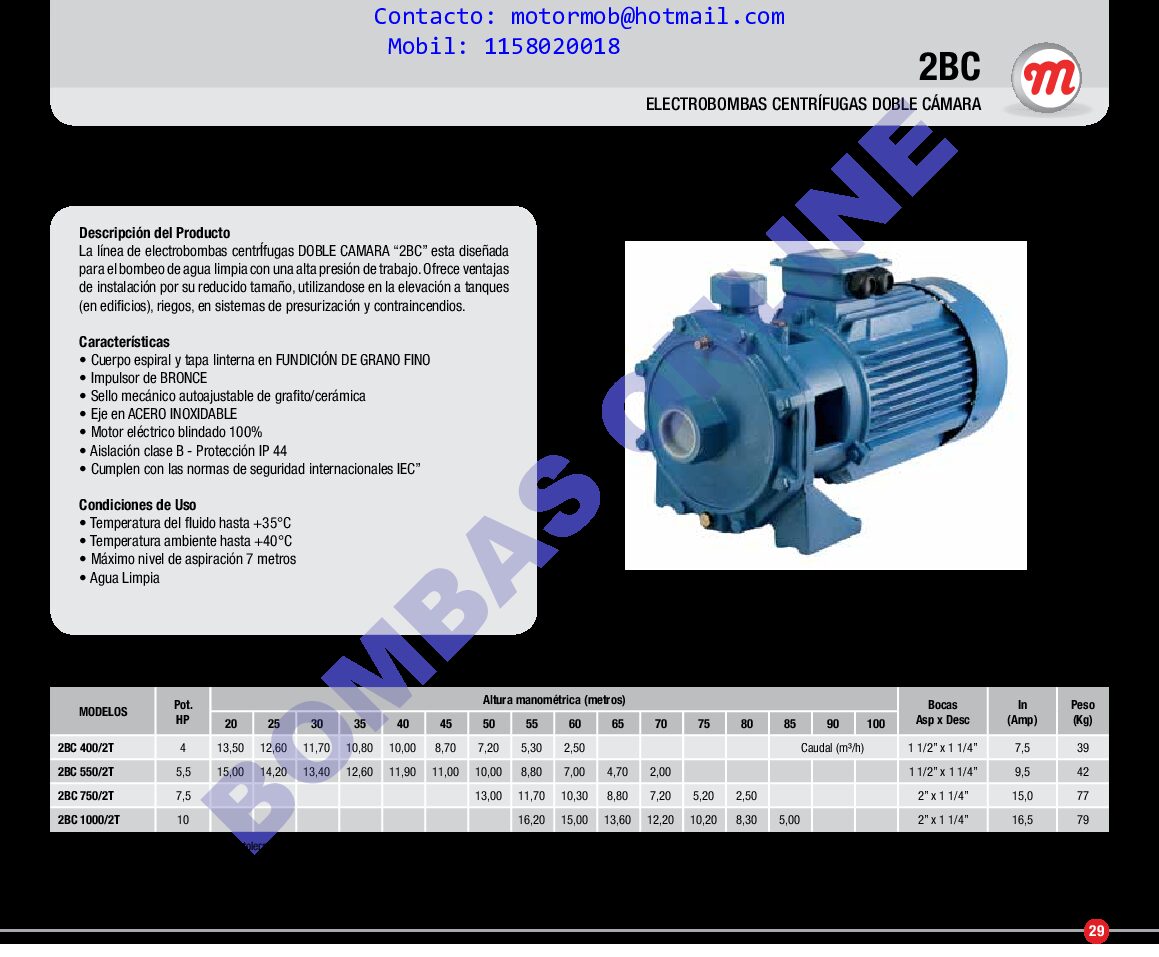 DESCARGUE LA FICHA TECNICA DEL PRODUCTO AQUI: 2BC FICHA TECNICA BOMBAS ONLINE