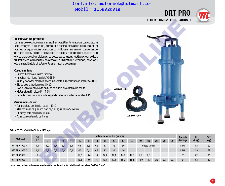 DESCARGUE LA FICHA TECNICA DEL PRODUCTO AQUI: DRTPRO FICHA TECNICA BOMBAS ONLINE