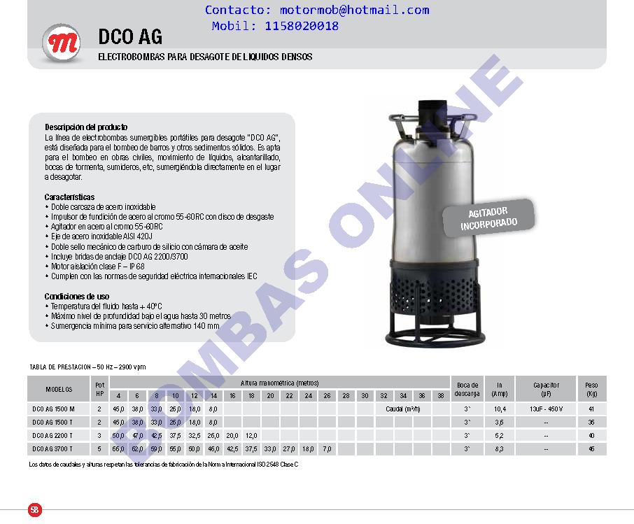 DESCARGUE LA FICHA TECNICA DEL PRODUCTO AQUI: DCOAG FICHA TECNICA BOMBAS ONLINE