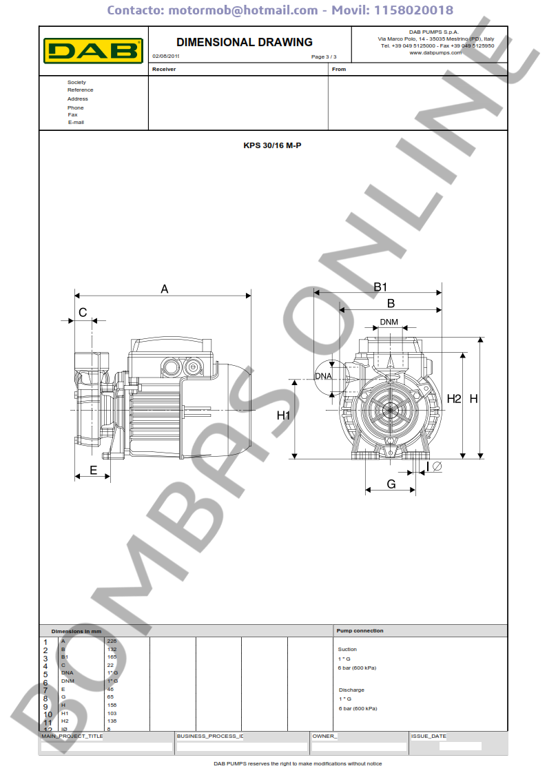 ITEM: DAB KPS 30/16 M-P – MONOFASICA – 101112224