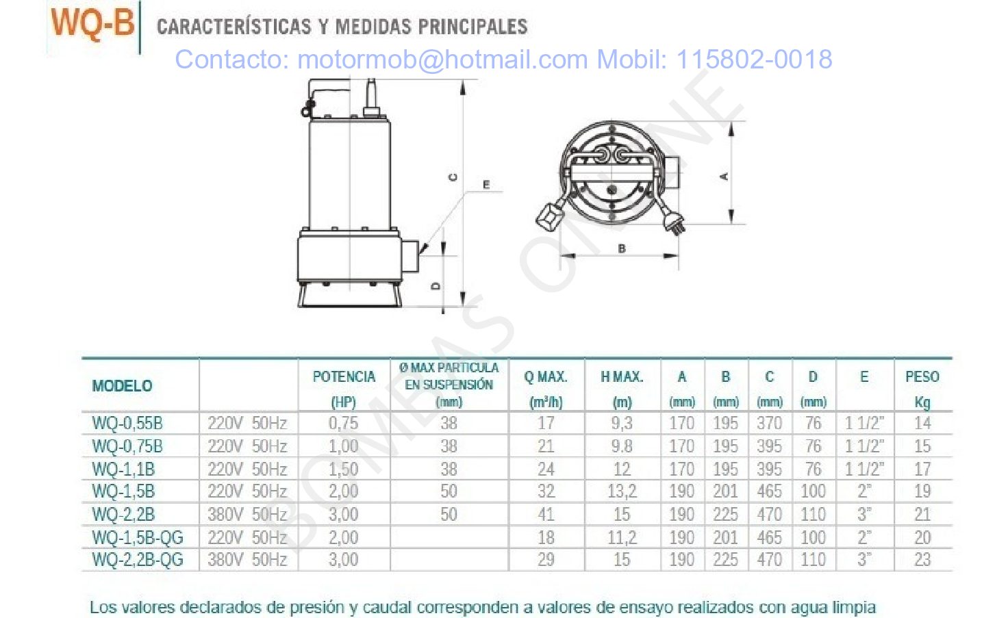 ITEM: Bomba Sumergible Cloacal INOXIDABLE CZERWENY WQ-0,55B – Monofásica