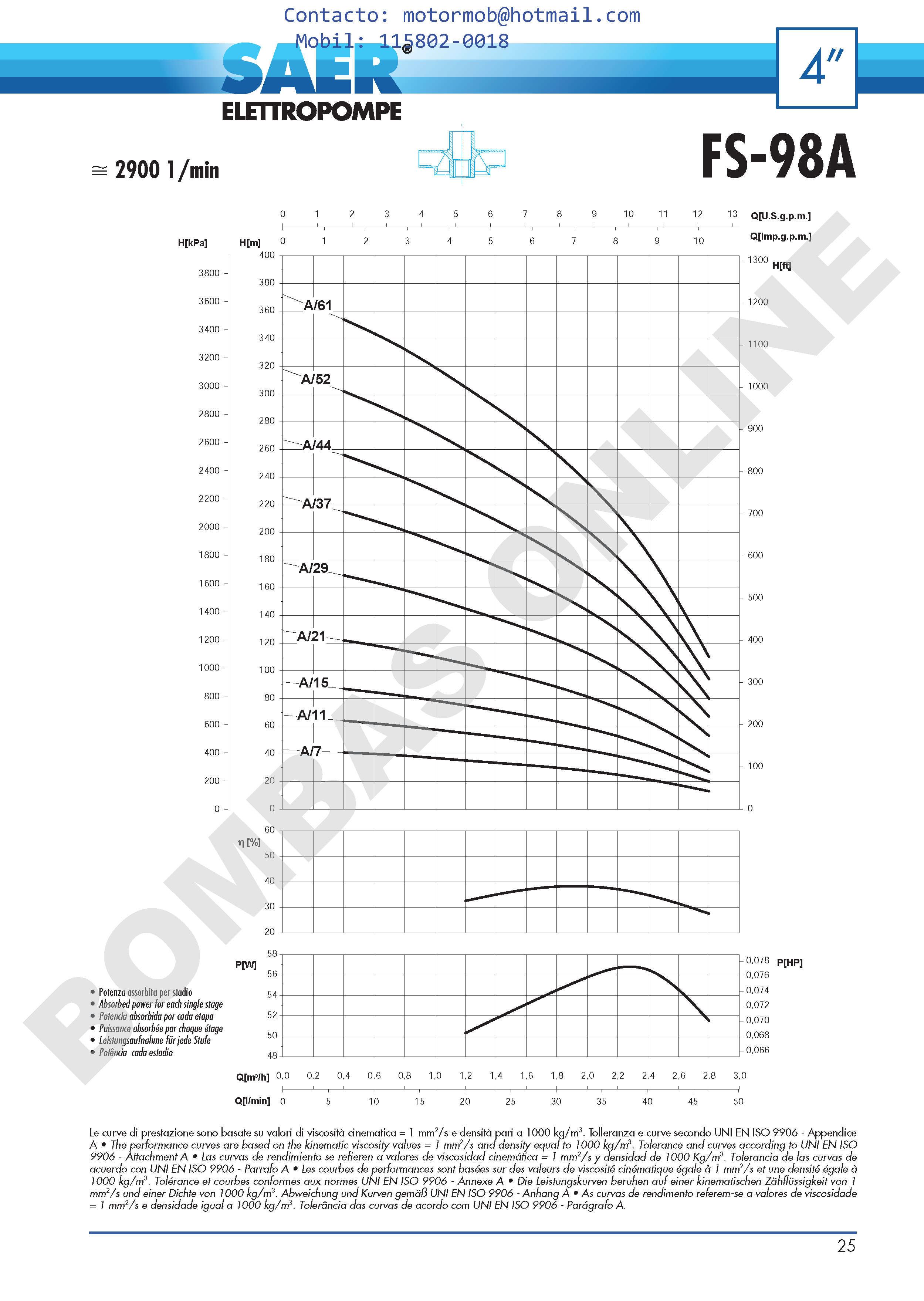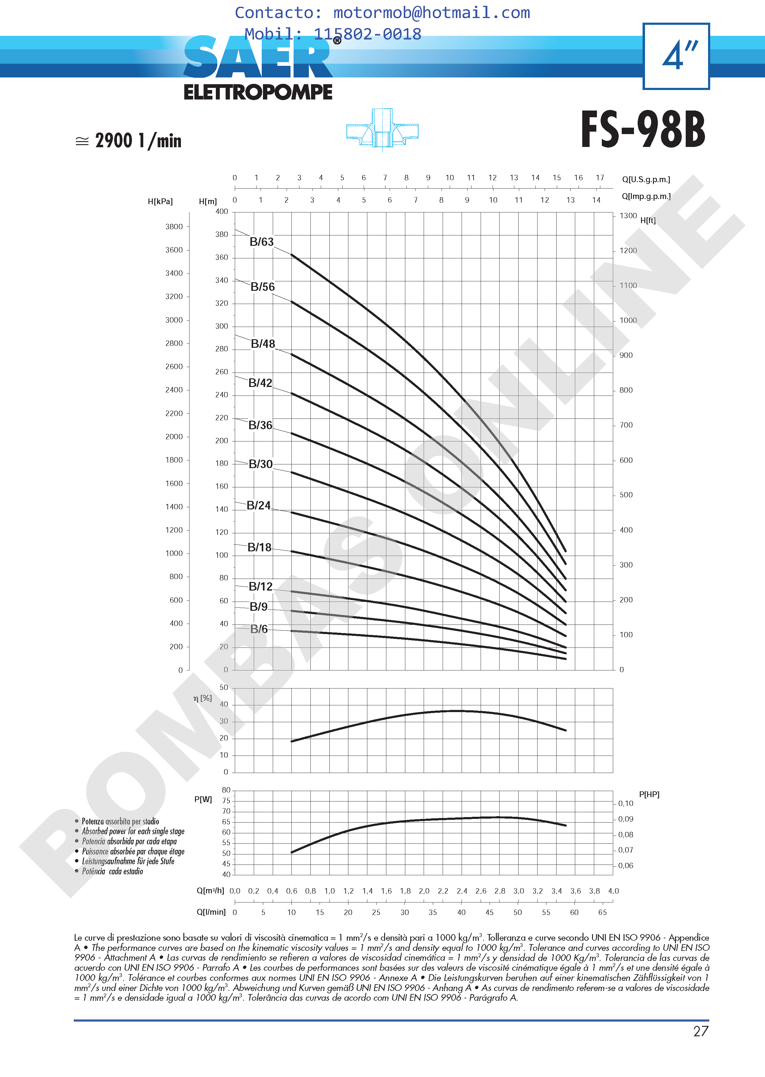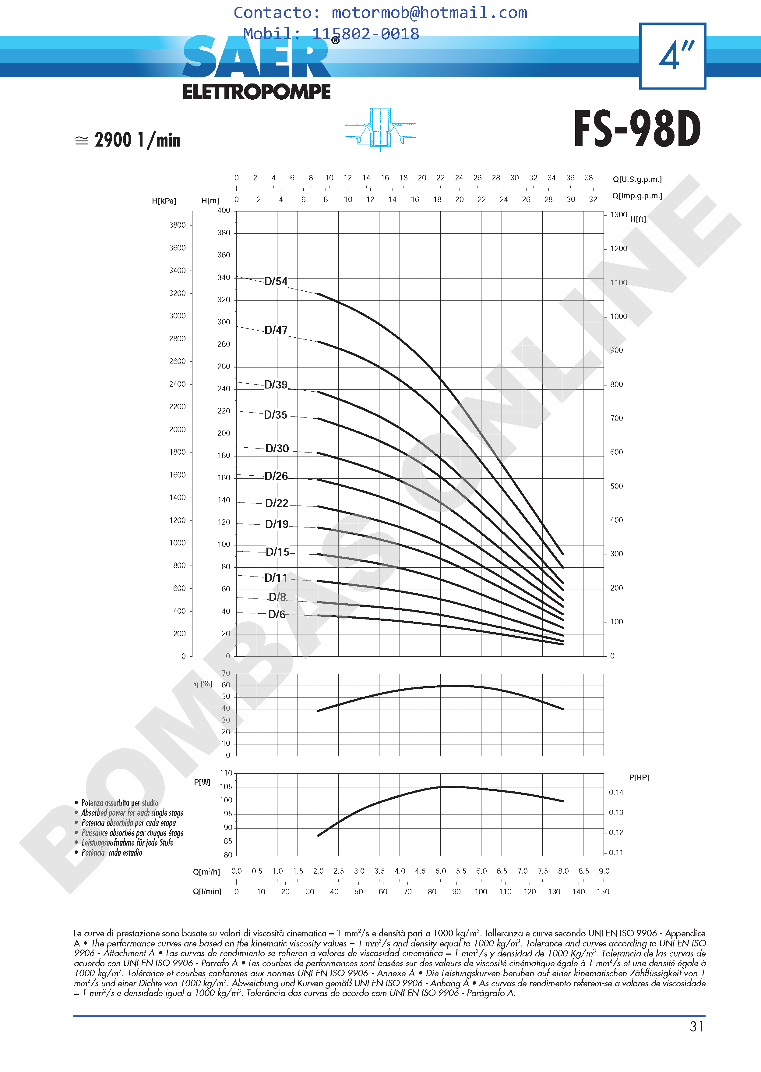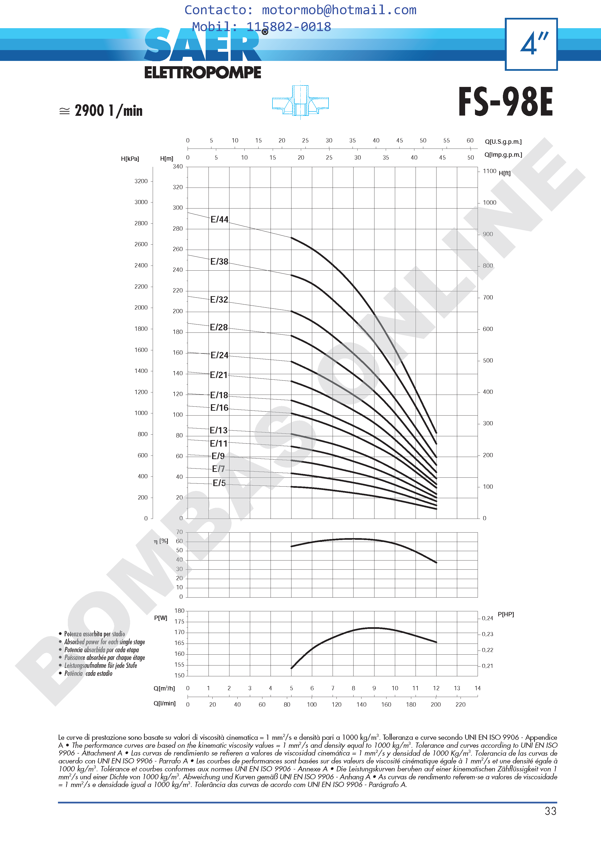 Bomba Sumergible con Impulsores Flotantes SAER FS-98: