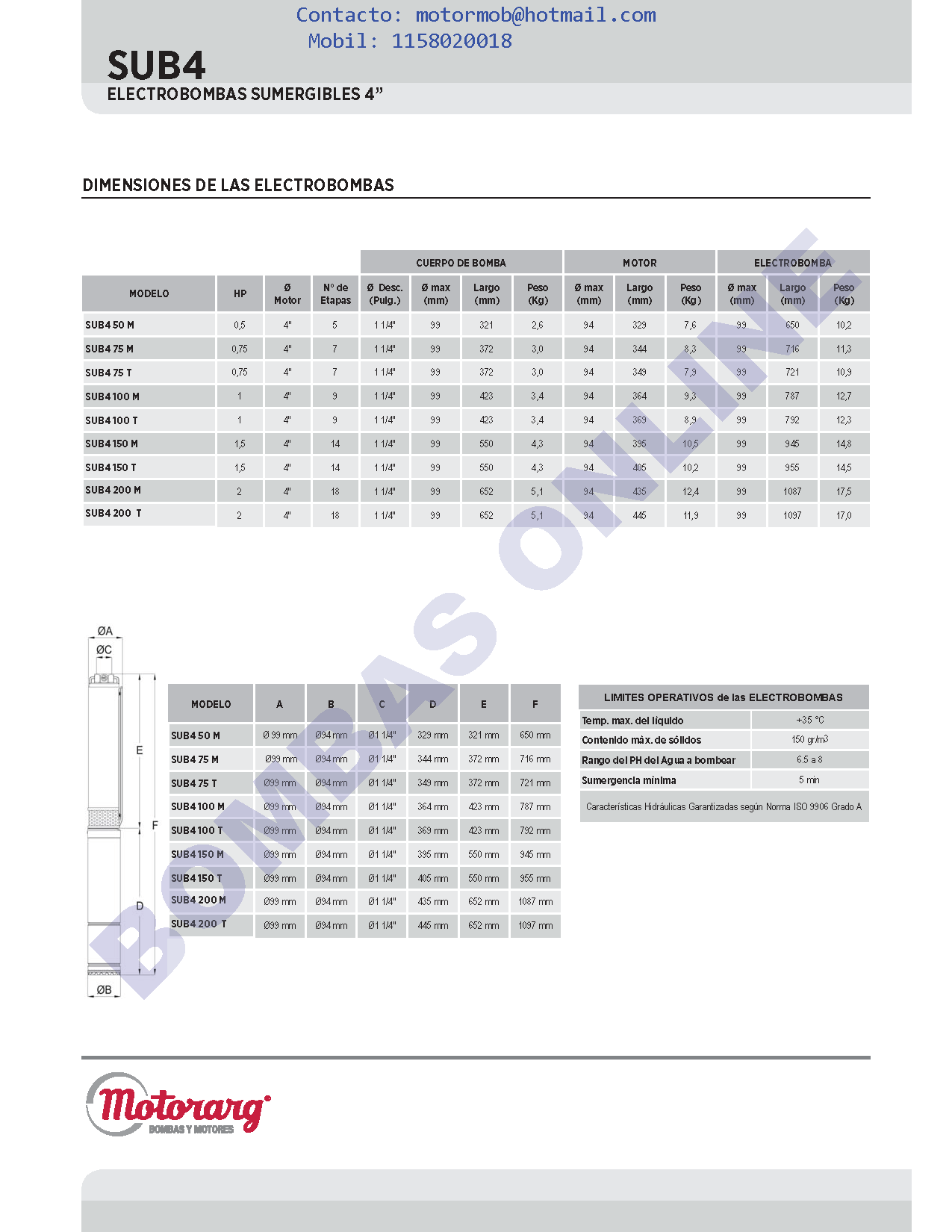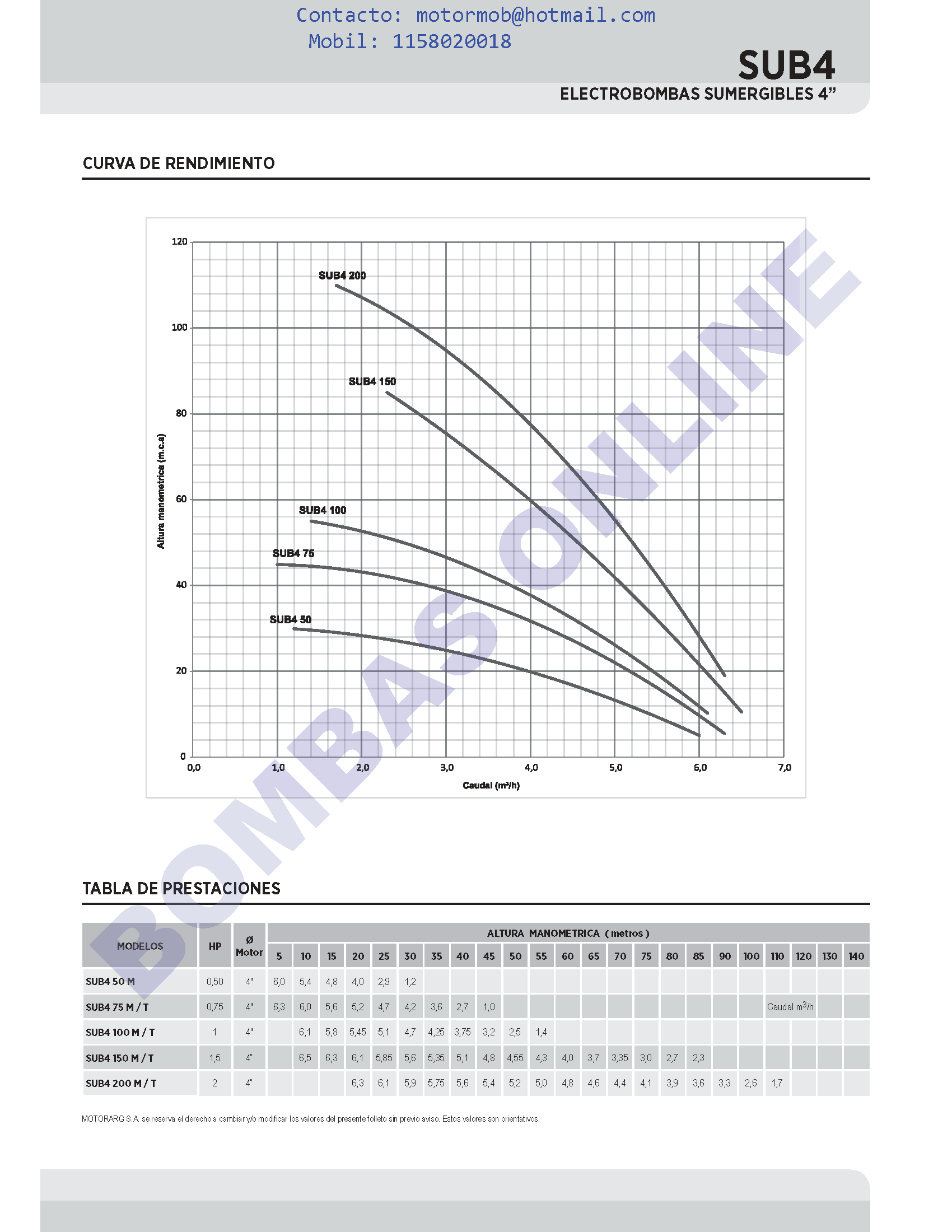 DESCARGAR FICHA TÉCNICA DEL PRODUCTO SUB4 FICHA TECNICA BOMBAS ONLINE