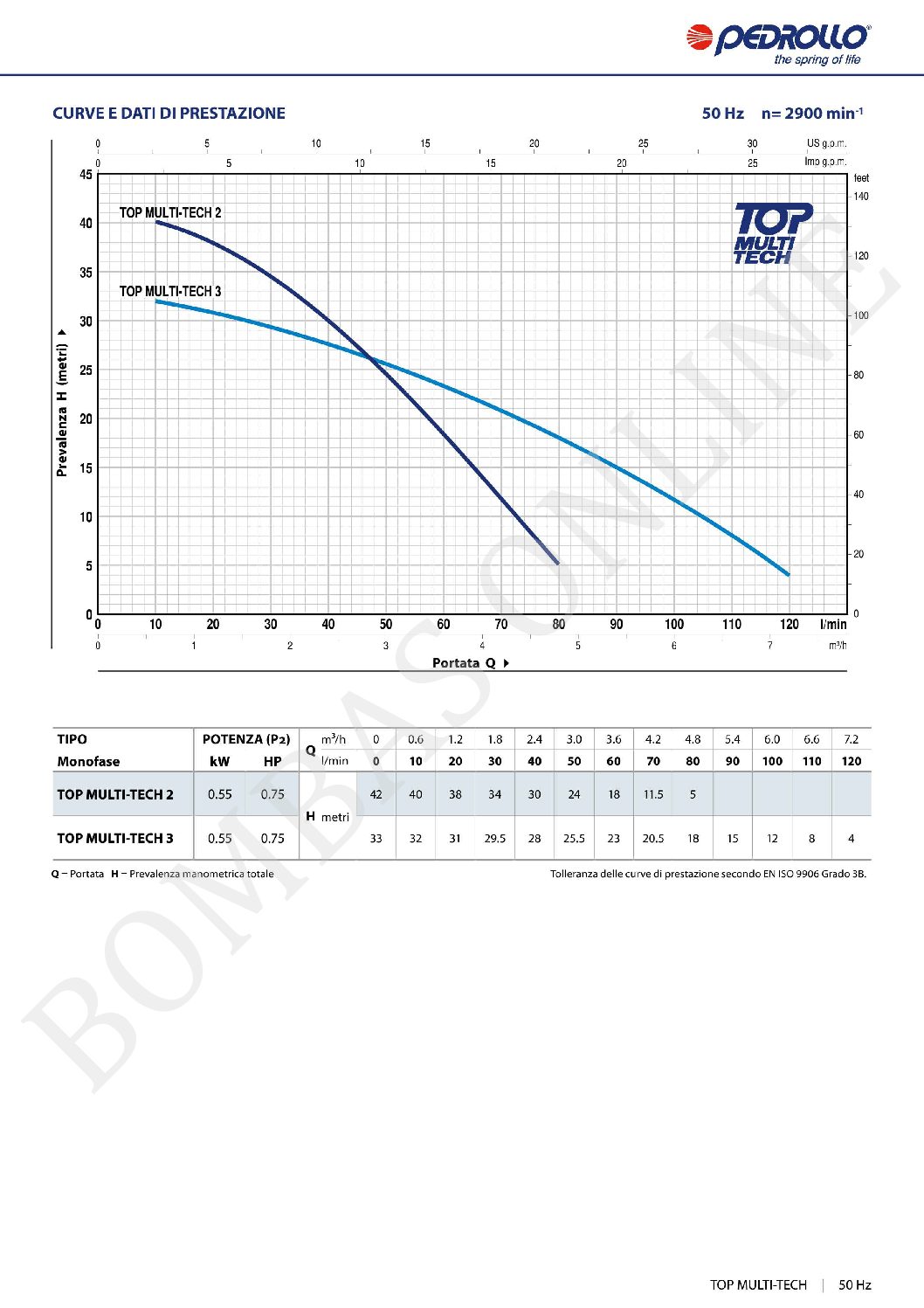 Las electrobombas TOP MULTI-TECH se recomiendan para bombear agua limpia y líquidos que no sean químicamente agresivos para los materiales que componen la bomba.