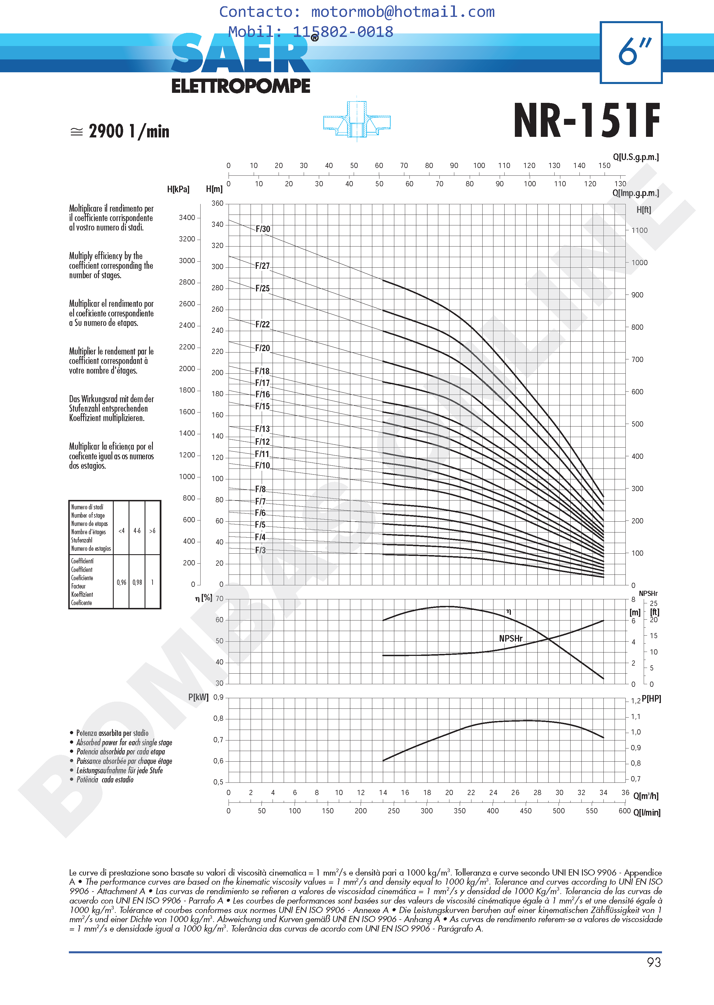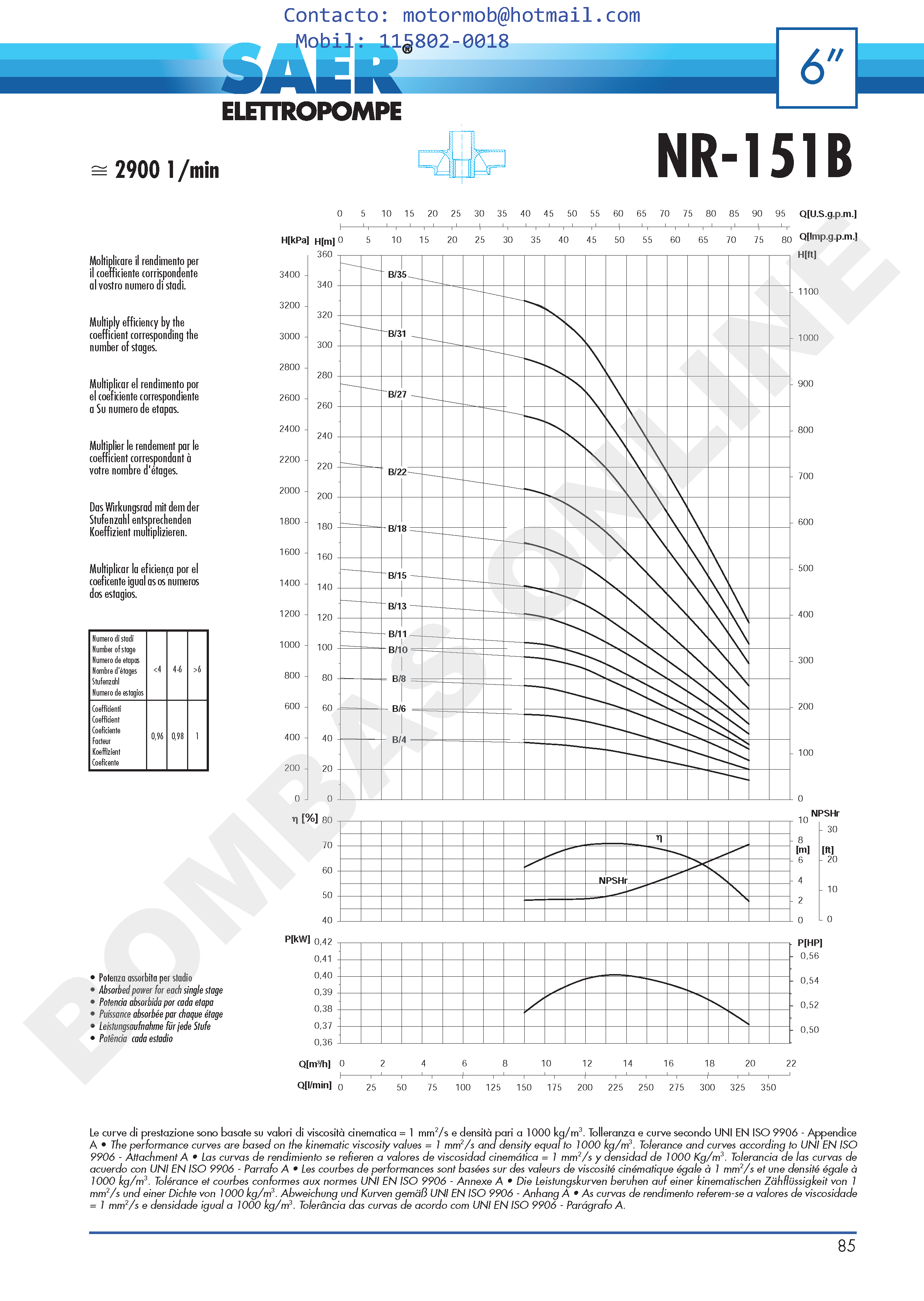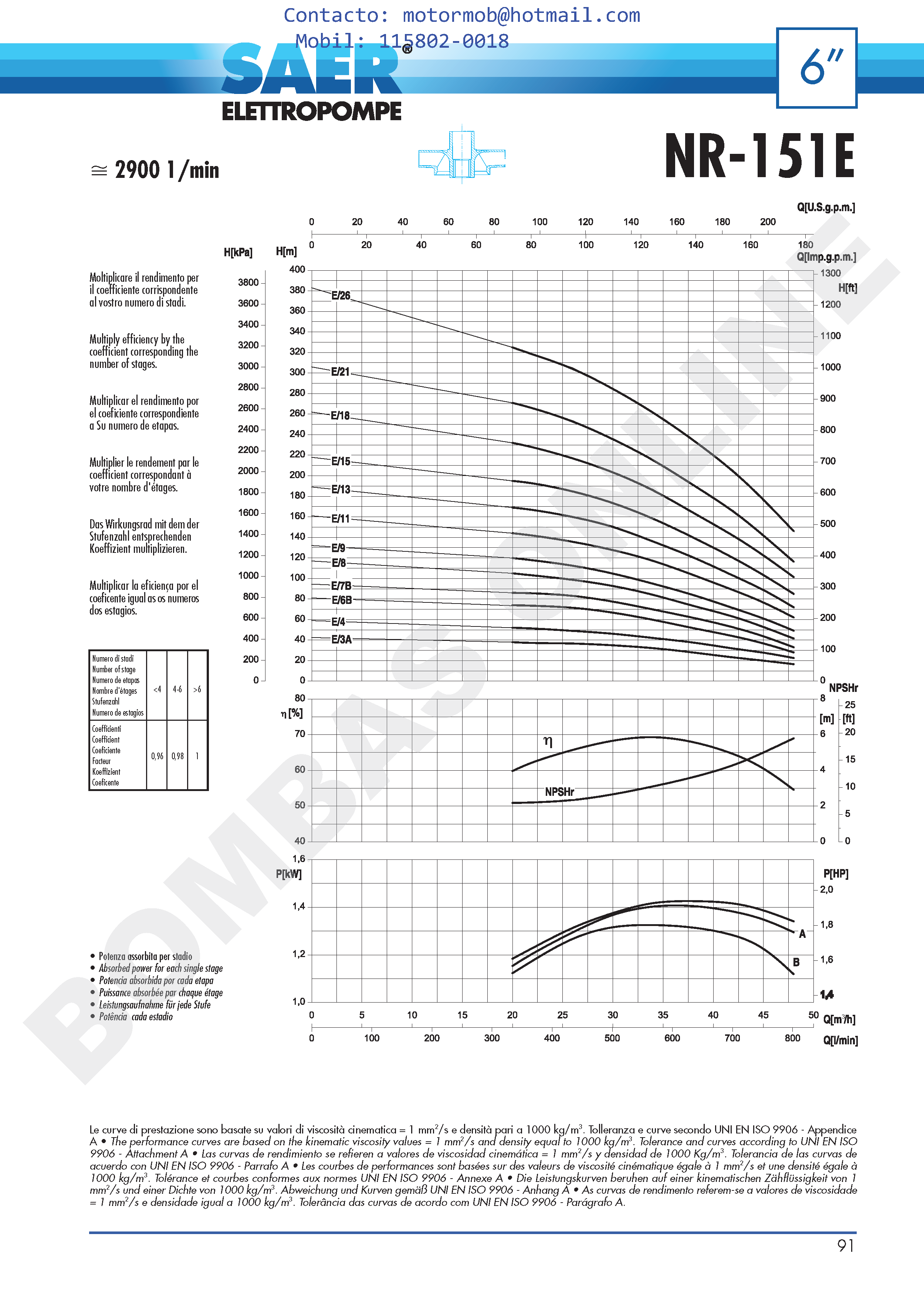 Bomba Sumergible de 6 Pulgadas SAER NR-151: