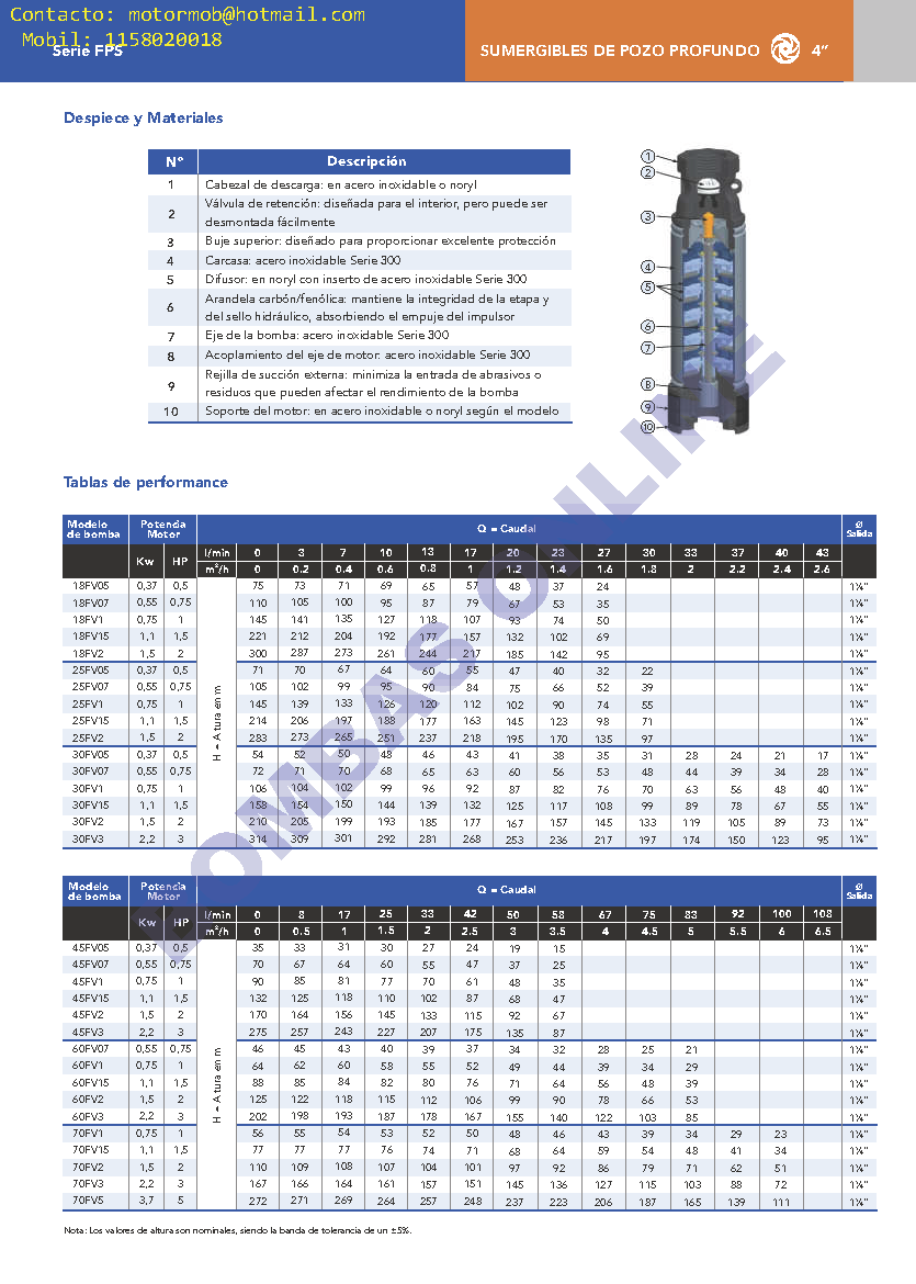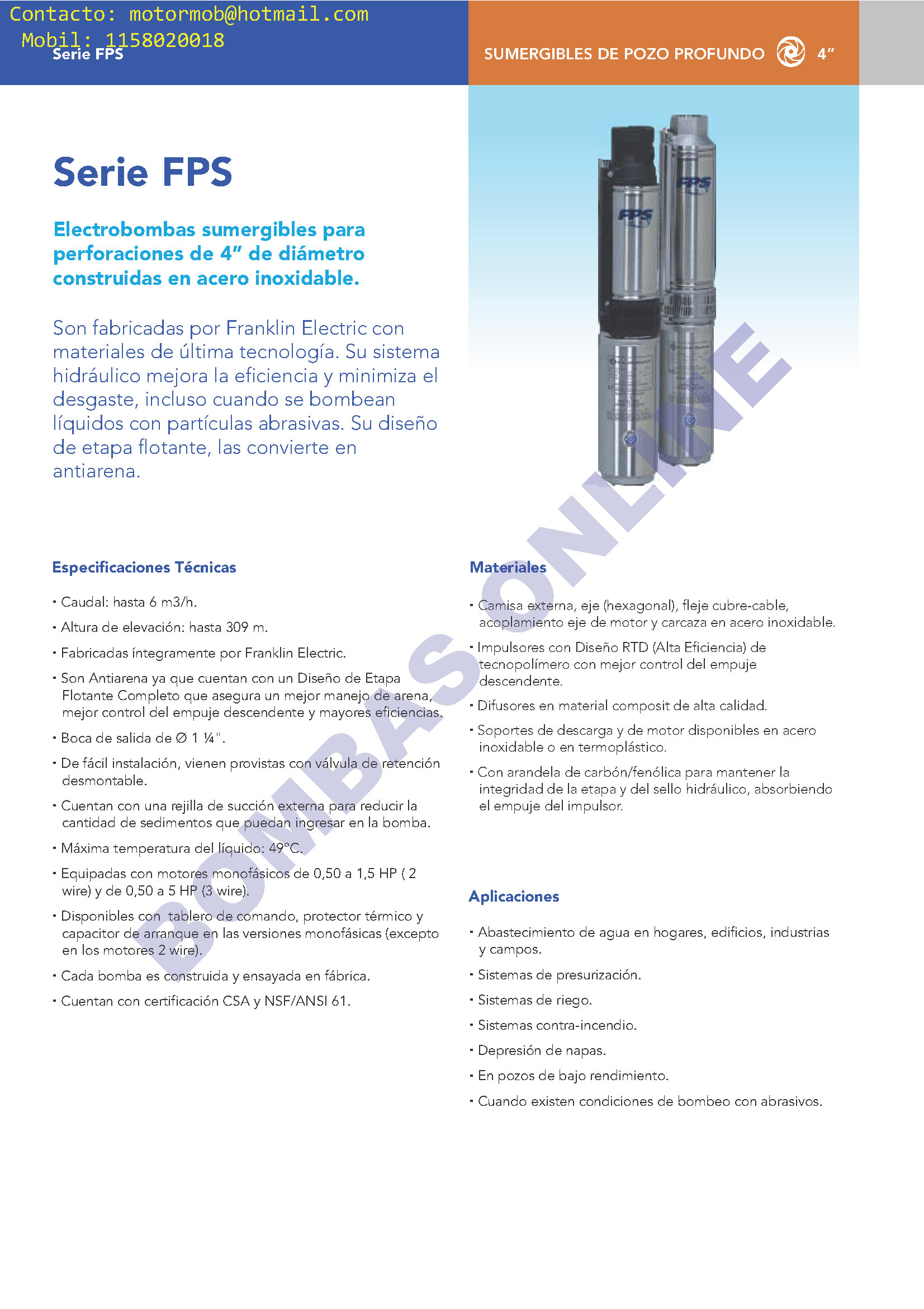 DESCARGAR FICHA TÉCNICA DEL PRODUCTO FICHA TECNICA FPS BOMBAS ONLINE