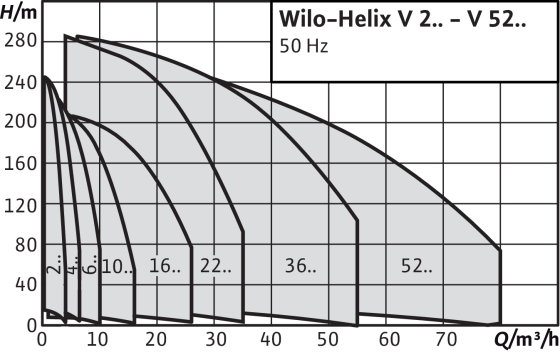 - Carcasa de la bomba de acero inoxidable 1.4308 (AISI 304) o fundición gris con revestimiento KTL EN-GJL 250, bridas sueltas de fundición gris con revestimiento KTL EN-GJL 250 para Helix V 22/EN-GJS 400 para HelixV 36-52.